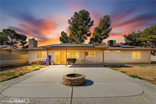 Single-family residence featuring 3 bedrooms and 2 bathrooms with approximately 1,542 square feet of living space, situated on an approximately 18,000-square-foot corner lot in Apple Valley. The home offers a functional floor plan suitable for everyday living and entertaining. Property includes leased solar panels for energy efficiency. Exterior features a spacious backyard with a built-in fire pit. Conveniently located near Highway 18 and Interstate 15, providing easy access to shopping, dining, and commuter routes.
