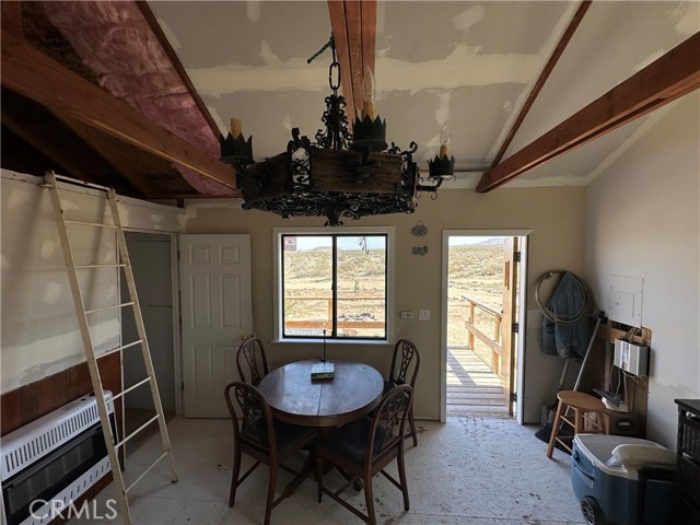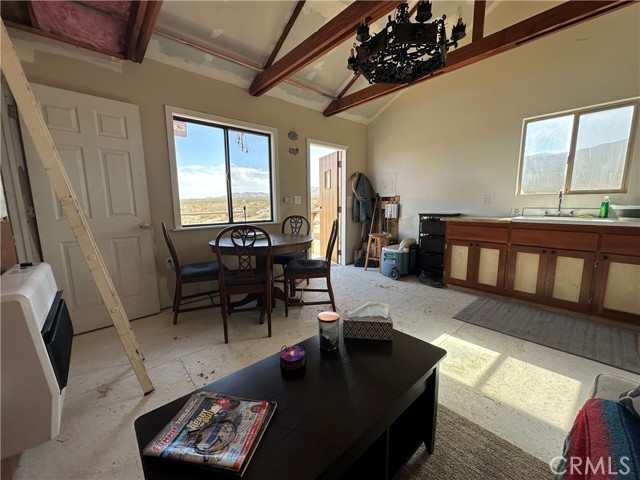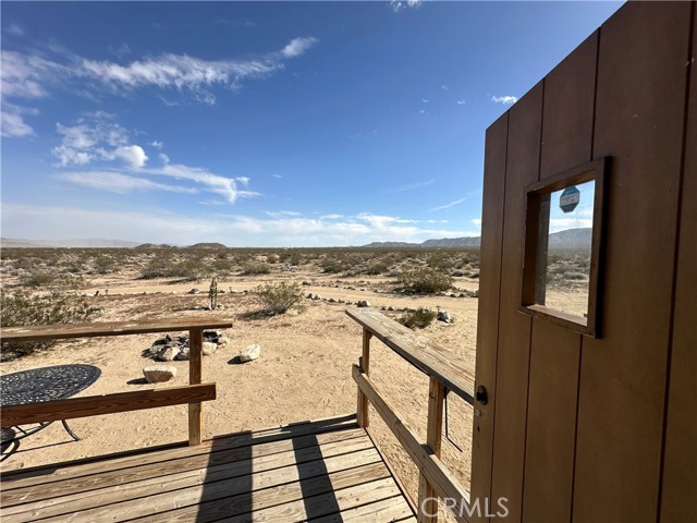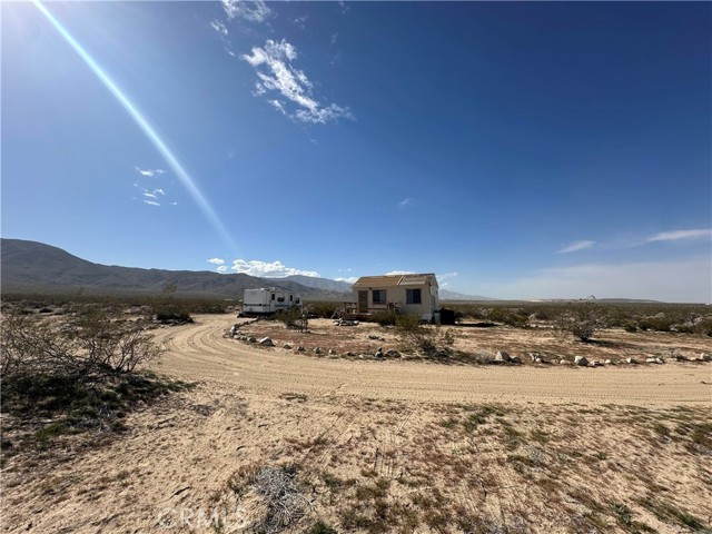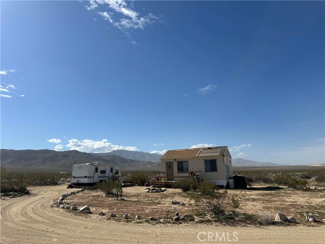 Get ready to be dazzled by this stunning off-grid retreat on 2.5 acres of pure paradise! Nestled in the breathtaking open landscapes of Johnson Valley, this property captures the magic that first drew people to the Hi-Desert! As you journey to your new escape, you'll find yourself surrounded by enchanting, endless desert vistas filled with vibrant cacti, creosote, majestic Joshua trees, and awe-inspiring mountains that create a perfect backdrop. As you arrive at the handcrafted gate, a wave of tranquility washes over you, whisking away the hustle and bustle of everyday life. Step into your private oasis, where the cabin’s secluded position offers breathtaking blue skies in every direction. Inside, you’ll discover a spacious and inviting layout, ready for your personal touch! The cabin features a stylish vanity, modern kitchen sink, oven, refrigerator, and tasteful shelving, all enhanced by exposed beams and a unique chandelier that adds flair to the space. Sunlight floods through well-placed windows, allowing you to soak in the panoramic views while enjoying meals at your dining table. the thoughtfully designed floor plan is utilized, leading you to a generously sized bedroom adorned with more exposed beams, a strategically positioned window for stunning views, and a bathroom complete with a vanity, commode, and a walk-in shower. The property is equipped with a wall heater designed for a 1200 square-foot house, ensuring cozy warmth during cooler nights. For those warm desert days, the swamp cooler/evaporative cooler, suitable for a 1400 square-foot space, provides efficient cooling with exceptional temperature control, making your living experience both comfortable and enjoyable year-round. Step outside onto the expansive wood deck, perfect for al fresco dining, lively barbecues, or simply unwinding as you take in a landscape so captivating, it rivals a masterpiece. Plus, the property includes a standalone RV, ideally suited for hosting guests or adventurers! Each morning, wake up to breathtaking sunrises that paint the sky in vibrant hues, and in the evenings, indulge in some of the best stargazing you’ve ever experienced. With government land bordering three sides, this secluded sanctuary offers the ultimate escape from the ordinary! Additional highlights include a full solar system for energy-efficient living, hauled water tanks, a cozy loft for extra guests,an unbeatable location just minutes from the world-renowned King of the Hammers grounds.