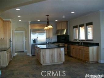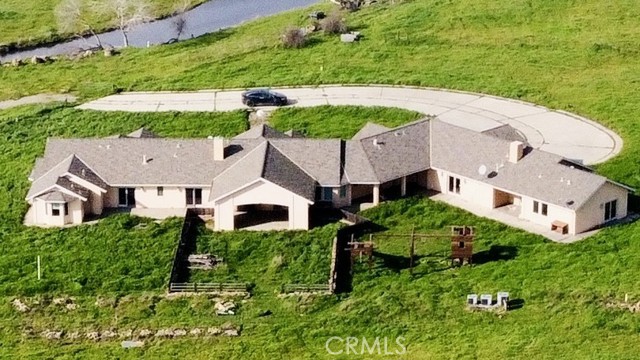 Indulge in refined country luxury on 158 fully fenced acres surrounded by sweeping panoramic views of rolling hills. Built in 2009 and offering 6,409 sq ft of living space, this extraordinary custom estate blends privacy, elegance, and thoughtful design for both grand entertaining and everyday comfort. Enter through a heavy-duty private gate and follow the scenic driveway to a residence designed for prestige and seclusion. The home features 4 bedrooms and 4.5 bathrooms, plus a fully private guest suite with its own kitchen, dining area, and separate 2-car garage — ideal for extended family or multigenerational living. The primary suite is a private retreat with a MAXX Jacuzzi soaking tub, triple-head walk-in shower room, dual vanities, fireplace, reading lounge, and dual walk-in closets. A secondary master suite also offers generous his-and-hers closets and upscale finishes. The gourmet chef’s kitchen is designed for serious culinary use, appointed with granite countertops, oversized island with pendant lighting, recessed lighting throughout, 6-burner range with stainless Wolf vent hood, stainless sink, garbage disposal, three dishwashers, and an expansive walk-in pantry. The adjacent dining area features a chandelier and custom china hutch with buffet counter. Elegant tile flooring flows through the home, leading to a formal dining room with fireplace, a dramatic floor-to-ceiling rock fireplace with built-in shelving in the living area, and a spacious executive office with separate entry and custom cabinetry. The oversized laundry room includes stainless sink, folding counters, hanging area, and storage. Three-zone A/C provides independent climate control, supported by insulated garage doors and an intercom system throughout. Infrastructure includes private well, septic, and propane service for self-sufficient living. Enjoy unmatched privacy just 10–15 miles from UC Merced, Mercy Hospital, and Merced College — a rare blend of seclusion and accessibility.