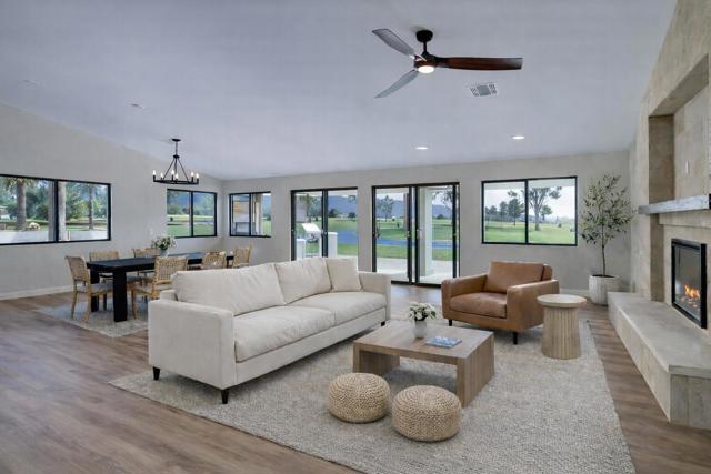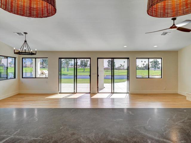 Views! Yes this home offers the best views in all of Mission Lakes Country Club. Sitting on a semi-circular, oversized lot (0.28 acre), this home boasts 180' of direct golf-course frontage. Over and above all else, this home faces south-east, perfectly tucked away from the westerly winds. Ask your real estate agent about this very important feature! This home has been extensively renovated from top to bottom with only the best of the best materials. This is the home for your picky clients. New windows flooring, doors, sliders, new paint inside and out and new cabinets throughout the home. New vanities for the bathrooms with beautiful new tile showers. The kitchen has high grade new appliances yes everything in the kitchen is new! The living and Kitchen have the open concept for great family entertaining. There is a beautiful fireplace in the living space to enjoy and the dining area is open to the large living space as well. There is a leased solar system that has low electric bills. Buyer will have to take over lease. There is a two car garage with cart garage. The home has its own cart path that will take you straight to the golf course. Mission Lakes golf course is one of the best in the Valley and it is a Ted Robinson Championship golf course! This is a wonderful community that offers two on title of full golf privileges with low HOAs of only 506 a month. There is also a 600 dollars a year fee that has to be spent in the restaurants. Amenities include Fitness room. heated pools spas, pro shop, tennis courts and many other activities and clubs to enjoy. Thank you for showing and please call agent to get any more information you might need.