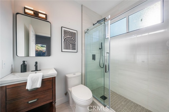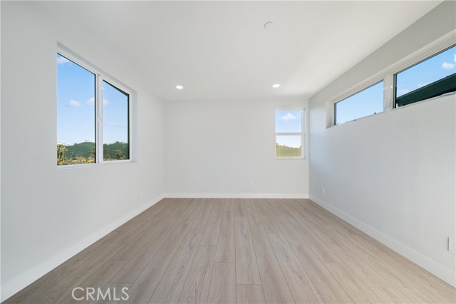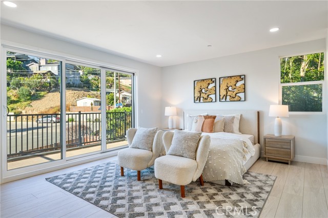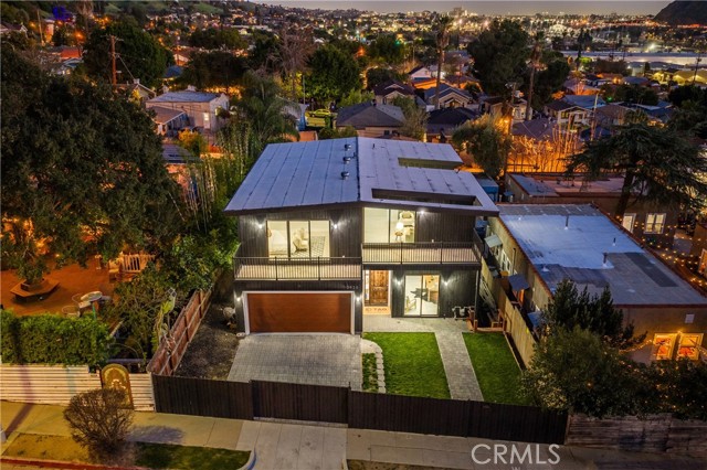 This brand-new, ground-up construction completed in 2025 delivers elevated modern living in a prime Northeast Los Angeles hillside setting. Thoughtfully designed with clean architectural lines and intentional indoor-outdoor flow, the home offers approximately 2,550 square feet of refined living space with 4 bedrooms and 3.5 bathrooms. The main level features a private en-suite bedroom with a full bathroom, ideal for guests or multi-generational living, with sliding glass doors opening directly to the outdoor space. At the heart of the home, the kitchen, dining area, and family room are unified beneath dramatically high ceilings, enhanced by expansive windows that flood the space with natural light. Two tri-fold sliding doors create a seamless connection to the backyard, making the layout equally suited for everyday living and effortless entertaining. The kitchen is both functional and elegant, showcasing quartz countertops, premium stainless-steel appliances, custom cabinetry, and a generous center island that anchors the open living space. Upstairs, the primary suite offers a private retreat with a spa-inspired bathroom and its own exclusive balcony, providing a quiet escape with open views. A secondary upstairs lounge area also opens to a balcony, adding flexibility and additional outdoor living space. All guest bedrooms enjoy open sightlines and pleasant views, reinforcing the home’s airy and elevated feel. Designed with energy efficiency, smart home features, and quality craftsmanship throughout, the property offers exceptional outdoor potential. The expansive, flat backyard provides ample space for a future ADU, while the existing electric iron gate along the perimeter wall already establishes the foundation for independent access, creating a rare opportunity for flexible use. Conveniently located near major transportation routes, dining, shopping, and the vibrant neighborhoods of Northeast LA, this newly built residence combines architectural presence, livability, and lasting value.