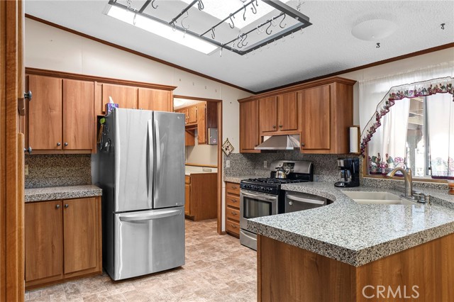 Set on almost a full acre just outside of town, this property offers the perfect blend of space, functionality, and convenience while still being only minutes from downtown and backing up to a creek for added privacy and a peaceful setting. Great 4 bedroom, 2 bathroom manufactured home features a split floor plan with a private primary suite that includes a walk in closet, ceiling fan, and walk in shower, along with three other nicely sized bedrooms and a guest bathroom with a tub and shower. Ceiling fans are featured throughout the home, and the spacious living room flows seamlessly into the upgraded kitchen, which includes Granite Transformations countertops, upgraded cabinetry, creating an open and comfortable layout with abundant storage and closets throughout. In addition to the main living areas, the home includes a generous bonus room measuring approximately 16x24 and about 384 square feet. This versatile space features a gas free standing stove and pool table and is ideal for a game room, family room, or additional entertaining area. Step outside to a covered patio complete with an outdoor kitchen that includes a sink and oven, creating an incredible space for gatherings and outdoor living. The property also includes a 9x11 swim spa that is five feet deep, a fully fenced yard, garden space, and blackberry, blueberry, and grape vines. This property is well equipped with a barn/shop offering 220 power and water, along with a spacious 3 car garage plus a separate 1 car garage, extensive RV parking, and OWNED solar. Recent updates include newer siding, exterior paint, HVAC, tankless water heater, updated windows in 2021, and a newer roof on the garage, along with leaf guards and additional improvements. This is a rare opportunity to enjoy nearly an acre of usable land with room for all your toys, hobbies, and entertaining, while still being close to town amenities. Buyer to verify all information.