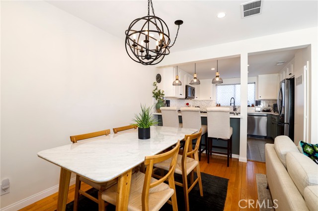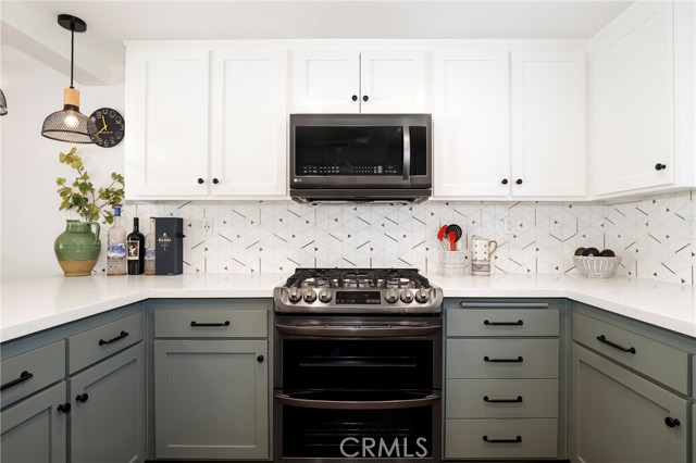 Experience urban sophistication in this meticulously updated, move-in-ready townhouse situated in a quiet 8-unit complex featuring a new roof installed in January 2026. Perfectly positioned near South Lake, Caltech, and PCC, this home offers a seamless blend of contemporary style and a prime central location. The open-concept main floor is designed for modern living, featuring durable wood-style flooring and bright, south-facing bay windows that flood the living and dining areas with natural light throughout the day. The entire space has been elevated with newly installed recessed lighting and designer fixtures. The true showstopper is the chef-inspired kitchen, boasting a modern two-tone aesthetic with sage and white cabinetry, crisp white quartz countertops, and a striking geometric tile backsplash. Equipped with a premium LG gas range and a convenient breakfast bar, it is the ultimate space for both daily life and effortless entertaining. Upstairs, find two generous bedrooms with plush newer carpeting and a stylishly updated full bath. Practicality meets luxury with a dedicated laundry area featuring high-end LG front-load machines and a professionally finished garage with interlocking floor tiles and LED shop lighting.