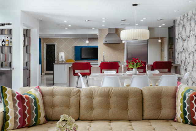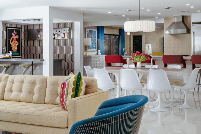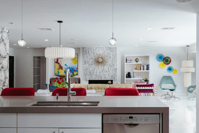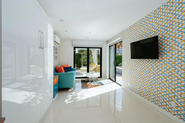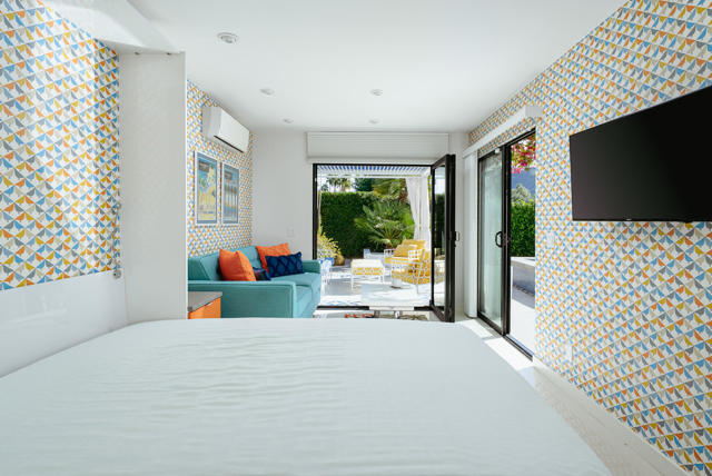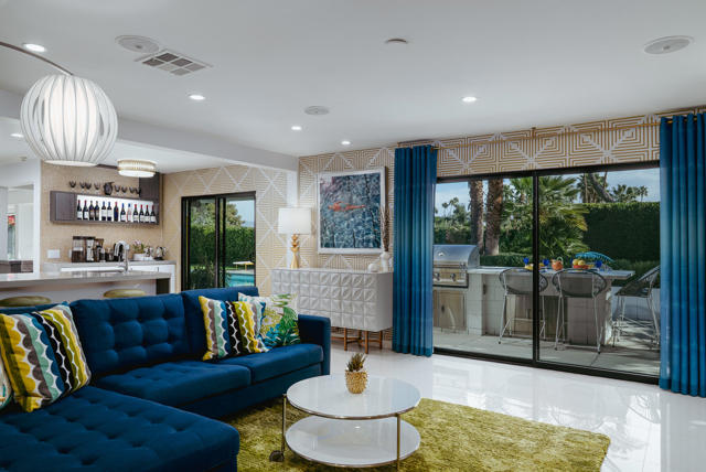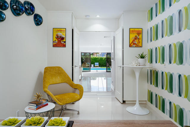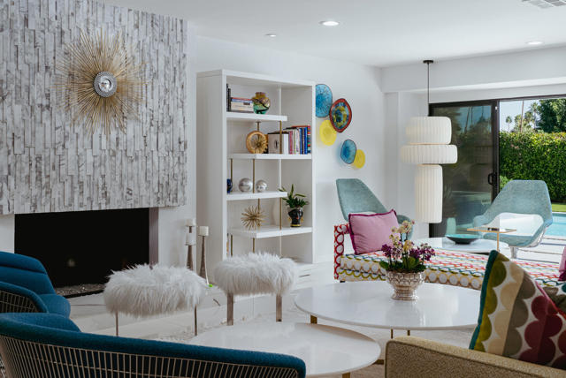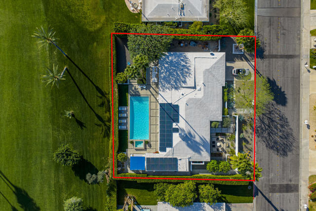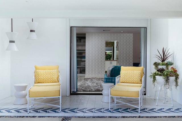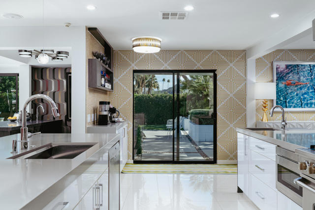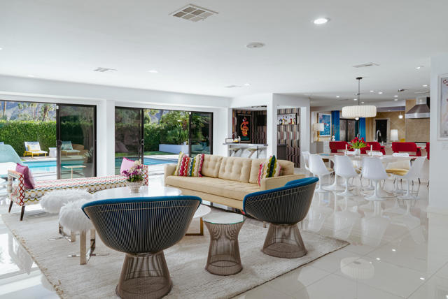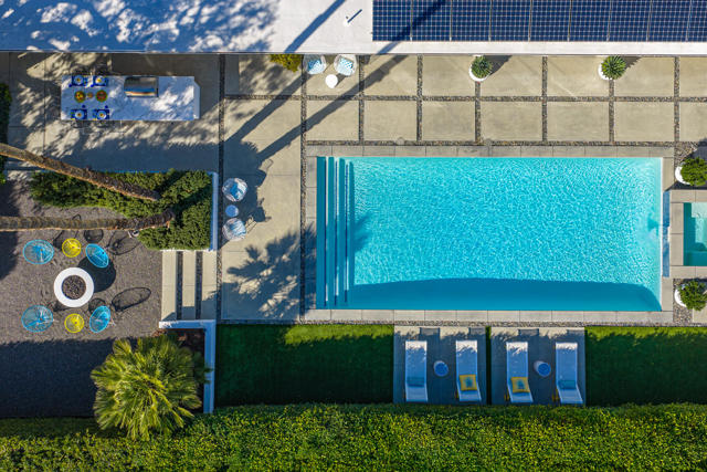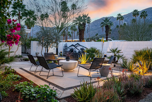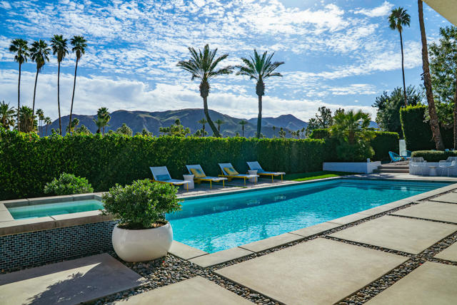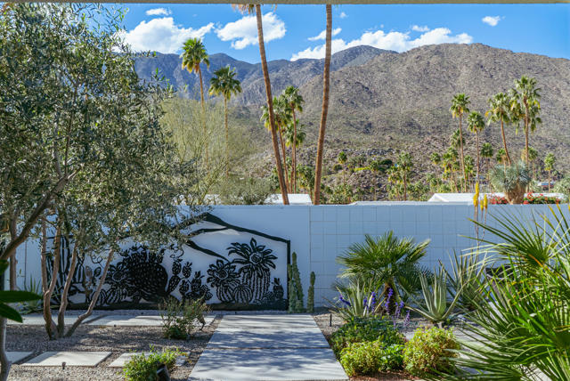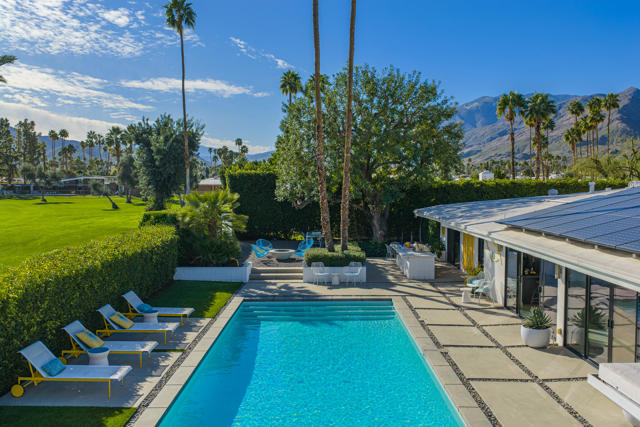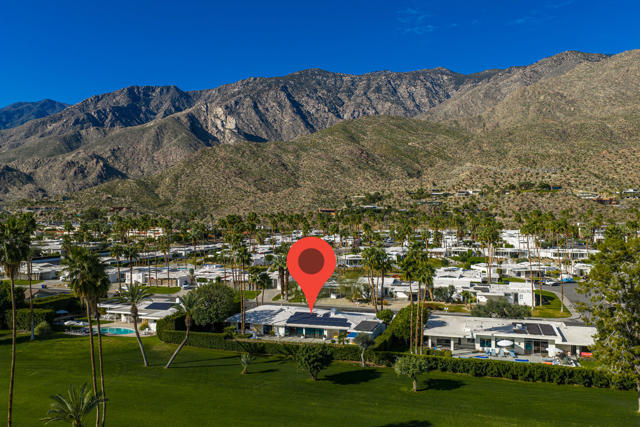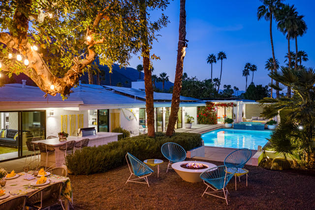 Quintessential mid-century modern architecture, thoughtfully updated to modern standards, defines this exceptional Indian Canyons residence, designed for gracious living and effortless entertaining.Expansive, light-filled living areas create a seamless connection between indoors and out, offering generous spaces ideal for both everyday living and large-scale gatherings. The recently updated kitchen is a standout, anchored by a large social cooking area and featuring updated appliances, a dedicated coffee bar, and a separate wet bar that serves the main living space--perfectly suited for entertaining.An attached casita with kitchenette and ensuite bath provides flexible accommodations for guests, extended stays, or a private office or studio. In the main house, the primary suite serves as a serene retreat, complete with a spacious primary bath and a step-out outdoor shower area that enhances the home's indoor-outdoor lifestyle. The en-suite guest room was re-designed for privacy and comfort and opens onto its own patio space. In addition, there is a smaller room that can serve as a bedroom or office.The outdoor spaces are a true Palm Springs oasis. In the backyard, wide, open views of the Santa Rosa mountains stretch beyond the golf course, while mature hedging ensures privacy. The pool has been completely rebuilt and repiped and is complemented by a new spillover spa. Multiple dining and seating areas surround the pool, along with a covered cabana, plumbed fire pit and a large built-in BBQ with bar seating. The lush, mature, and fully curated landscaping continues in the walled front courtyard, which has stunning views of the San Jacinto mountains.Additional features include solar power and whole-house water filtration. Located in Indian Canyons, one of Palm Springs' most sought-after neighborhoods, celebrated for its iconic modernist architecture and country club setting, this home offers the rare advantage of no HOA and no club dues. With phenomenal views in all directions and timeless design throughout, this is a special offering and a perfect opportunity to live out the midcentury Palm Springs dream.