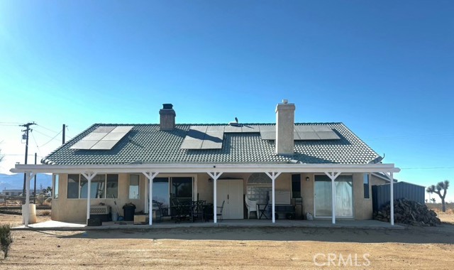 Wonderful family home set on over 2 acres of fully fenced horse property on a desirable corner lot. This custom-built residence offers 4 spacious bedrooms and 2 full baths, featuring soaring vaulted ceilings, pot shelves throughout, and abundant natural light. The spacious kitchen is filled with sunshine and opens to inviting living areas with two fireplaces, perfect for cozy gatherings. Every room features high ceilings and ceiling fans for year-round comfort, complemented by central heating and air plus a swamp cooler. The generous primary suite includes a spa-like bath with a jetted tub framed by a view window and a large, separate stall shower. Energy-efficient living with PAID-OFF SOLAR, consisting of 32 panels with a system cost of $41,357 and an estimated rate of $0.108 per kWh, offering long-term savings and value. Outside, enjoy a covered patio, expansive grounds, a Connex container, large storage shed, and plenty of space for animals, toys, or future projects.