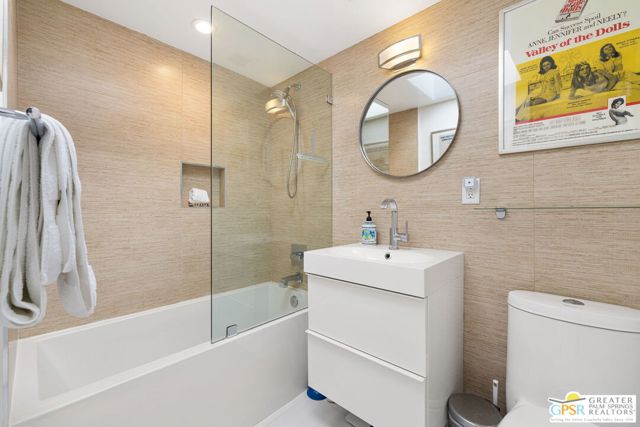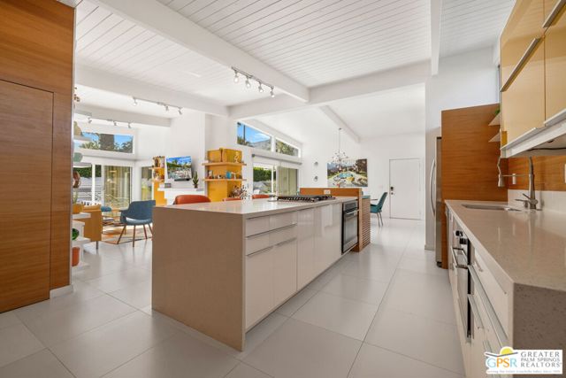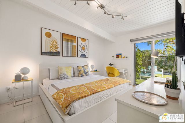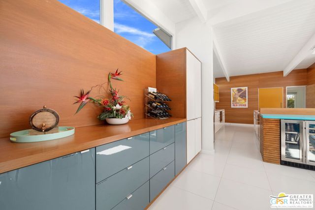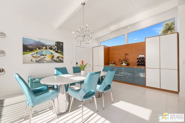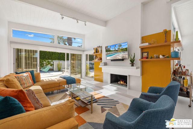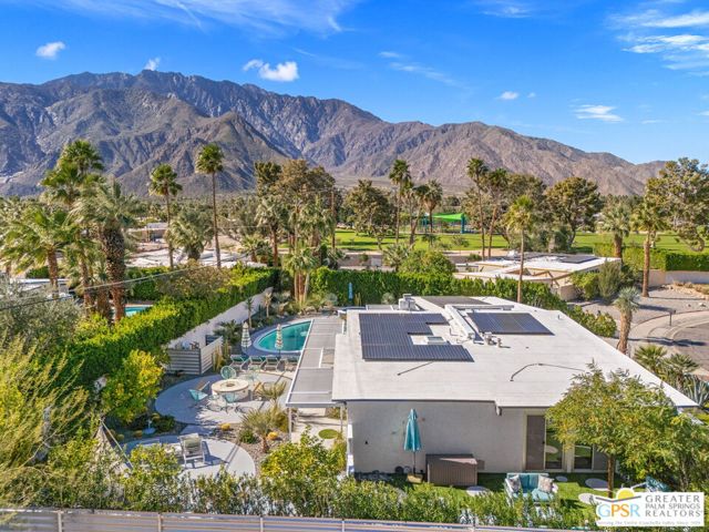 MOTOR UP to the cul-de-sac for a closer look at this iconic 1960 Alexander, quintessential Palm Springs and a darling of the Modernism Tour. A striking breeze block wall fronts the home, making a bold midcentury statement while providing privacy and architectural presence from the street. One of the most coveted rooflines follows with deep overhangs, extra tall ceilings, clerestory windows, and an effortless indoor outdoor flow designed for shade, breezes, and postcard worthy mountain views. Its Garden Road locale is a headline all its own, perfectly positioned within the architecturally significant Racquet Club Estates. The open concept layout spills seamlessly into a resort style backyard that delivers serious wow, ultra private and fully fenced with multiple outdoor entertaining zones anchored by a built in BBQ with bar sink and dry bar, a sparkling saltwater pool and spa with waterfall, a lighted pergola perfect for evening gatherings, gas fire pit, and citrus trees that complete the desert playground. The open kitchen, featuring an island bar with beverage fridge, was built for hosting, while the living room's gas fireplace adds warmth and style. Bedrooms are thoughtfully separated for privacy with the primary suite opening directly to the pool terrace, while guest bedrooms two and three enjoy access to a spacious private garden retreat. Notable upgrades include OWNED SOLAR by HPE, modernist custom cabinetry in the kitchen and expanded dining area, a newer HVAC system, tankless water heater, and custom window coverings throughout. Located moments from the best of Uptown and Downtown Palm Springs shopping, dining, and entertainment, this home shines as a full time residence, weekend escape, or vacation rental (30+ days). More than almost any other builder, Alexander Homes helped cement Palm Springs as the capital of midcentury modern living, and today these homes are highly collectible, endlessly photographed, and always in demand.