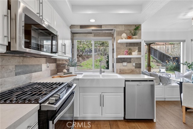 Stunning home in Rancho Santa Margarita, known for its safety, schools, and community amenities that have made it one of the most desirable cities in California! This 4 bedroom home offers freshly painted walls throughout, wood floors throughout the first floor, upgraded windows, custom kitchen, spacious living and family rooms, as well as a generously sized backyard! Upstairs you’ll find a whole house fan, new carpet, thoughtfully inspired master bathroom that showcases a custom shower, new vanity and much more! PEX plumbing too! HVAC has been replaced as well as the water heater and windows! Access to Rancho Santa Margarita's master-planned community amenities like the beach club, lake, tennis courts, water park, trails, and much more are included with your HOA dues. No Mello Roos! Tax rate is about 1.01%!