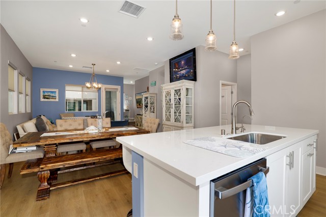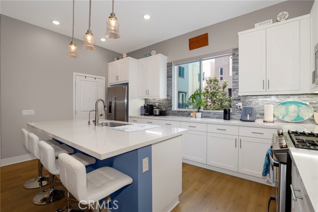 Nestled within the highly desirable gated Ponte Vista Master-Planned Community of Coastal San Pedro, 1642 W Saratoga Lane is a top of the line Plan Three, 4 Bedroom and 3.5 Bath, 1873SF Detached Tri Level Home and offers the perfect blend of modern design, thoughtful upgrades, and a vibrant coastal lifestyle. This beautifully enhanced and upgraded residence combines comfort and sophistication with a numerous list of improvements, making it truly move-in ready! Step inside to find a custom painted designer interior that compliments the home’s bright and inviting layout. The kitchen has been updated with a new designer tile backsplash, quartz countertops, spacious center island with seating for 4 bar stools, white shaker cabinets, stainless steel appliances, chic pendant lighting & pantry. The upgraded living room light fixtures set the tone for stylish open entertaining with outdoor covered patio for BBQ! The bathrooms have all-new lighted mirrors, modern glass shower doors, and a newly installed full size vanity in the mid level power room, adding both function and elegance. Upstairs, the primary suite shines with updated lighting, custom closet organizers, and new roller window blinds throughout for a polished and tailored feel. Luxurious shiplap accent walls in two upstairs primary bedroom suite and lower junior suite which brings warmth and coastal flair to the sleek design. Durable LVP laminate flooring on the lower staircase and throughout the main level enhances the home’s flow, while stackable washer and dryer closet on the main level and thoughtful custom storage solutions—including ceiling-mounted garage racks and epoxy-coated garage flooring—add everyday convenience. This residence also embraces sustainable living with owned, not leased, SunRun 9 panel solar energy system, Central HVAC with electric heat pump and the convenience of a newly installed Tesla Universal Level 2 EV Charger in the spacious two car attached garage. Situated just minutes from coastal trails, PV resorts, and charm of San Pedro’s waterfront, Ponte Vista offers resort-inspired amenities and a true sense of community featuring a large in-ground community swimming lap pool and spa, firepit, outdoor BBQ area & lawn, fitness center and hiking trails. Every detail of this model home has been carefully curated to deliver stylish coastal living at its finest. Close to I-110 Frwy local restaurants and retail shops in the Rancho Palos Verdes Western Avenue Corridor. A Must See!