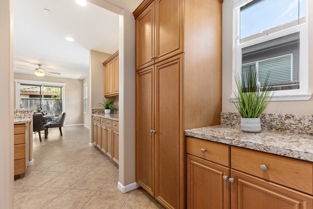 Location, location, location! Welcome to this STUNNING dream home located in THE LAKES! Built in 2013, this exceptional single story retreat sits on a corner lot across from a beautiful lake in a gated community with security check-in. The charming front porch invites you to relax while taking in the fountain adorned lake view. You will LOVE this open floorplan! Gather friends & family in the Palatial sized Great Room boasting w/natural light, leading out to the backyard California Room w/gas fireplace, perfect for outdoor living. The kitchen has a marvelous 'Centerpiece' island, granite countertops, loads of cabinets & storage, butler pantry & stainless steel appliances. Very spacious Primary bedroom w/slider & oversized bath w/dual sinks, separate soaking tub & shower & walk-in closet w/desired built-in's. Tile thoughout home & upgraded carpet in bedrooms. GORGEOUS backyard thoughtfully designed w/multiple seating areas, built-in planters, turf & beautiful landscape. Exterior newly repainted & desired tile roof. 2 car garage w/shelving & Smart garage door opener. Meticulously cared for, this home is perfection as a private oasis or an entertainer's dream. Community waking trails, playgrounds, picnic areas & 3 fountain lakes only steps away! Hurry, this one will go fast!!!