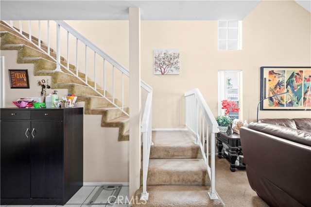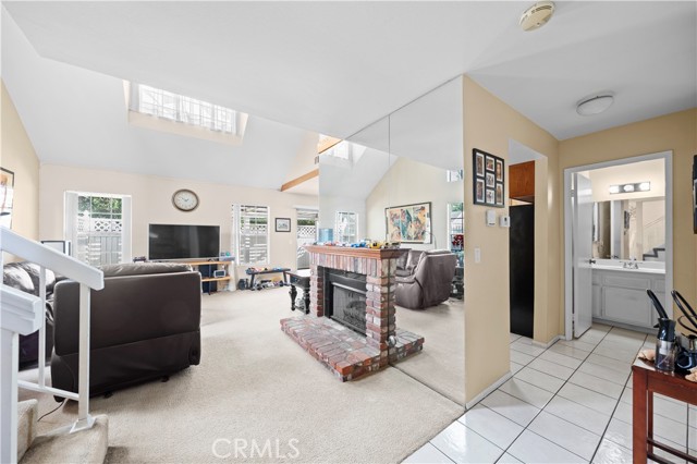Situated within a gated townhome community offering a pool, spa, and well-maintained common areas, this end-unit residence features a functional layout with added privacy and a generously sized private patio area rarely found in similar homes ideal for outdoor living or entertaining. The main living area offers vaulted ceilings, a skylight that fills the space with natural light, and a brick fireplace creating a warm and cozy atmosphere. The kitchen is finished with granite countertops and is complemented by tile flooring that extends through the dining area. The main floor also offers a bedroom and full bathroom providing flexibility for guests, multigenerational living, or a home office. Upstairs, the primary suite offers privacy and comfort, accompanied by an en-suite bathroom. The upper level also includes a spacious loft with access to a private balcony, ideal for a secondary living space or workspace. Conveniently situated near shopping, dining, parks, and major commuter routes, this home presents a well-balanced combination of location, community amenities, and a low-maintenance lifestyle.