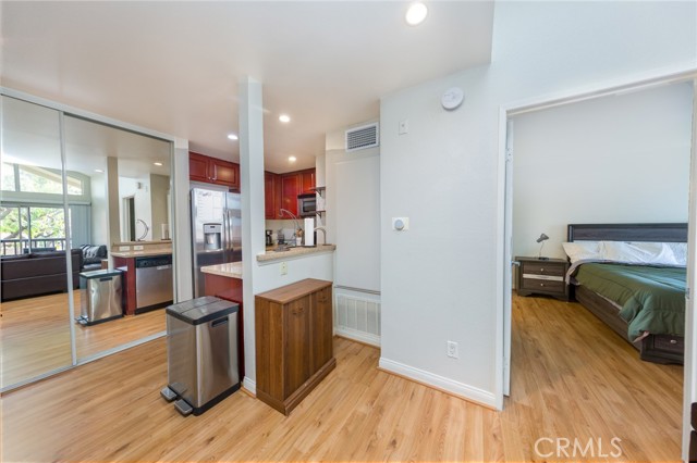 Welcome to this beautiful 1 bed, 1 bath, 610 sq ft unit at The Met complex in Woodland Hills. This light and bright top floor condo features high vaulted ceilings with no one living above you. The bathroom has been remodeled, and the condo has been freshly painted throughout, offering hardwood style flooring. The condo includes granite countertops, stainless steel appliances, a fireplace, and an open balcony with abundant natural light and views of the main pool. It is ideally located within the complex and comes with 2 tandem covered parking spaces. The Met offers a guard-gated community with resort style amenities including 6 lighted tennis courts, 4 pools, indoor basketball and racquetball courts, a fitness center, a children’s play area, a pet friendly environment, and 24-hour security. The location is within walking distance to The Village, Warner Center Park, and all the dining, shopping, and entertainment that Warner Center has to offer. This turnkey condo will not disappoint.