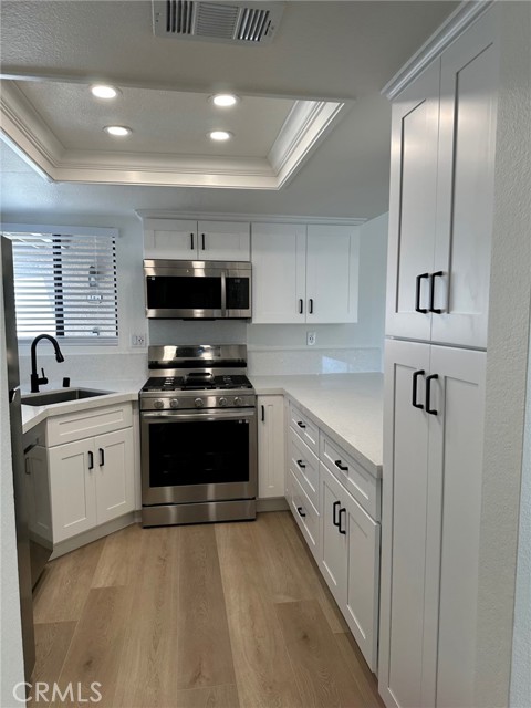 Remodeled condo - TURNKEY! Move in ready!! This upstairs (end cut unit) one level home features vaulted ceilings, new flooring, new kitchen cabinets, new quartz countertops, stainless steel kitchen appliances include the range, dishwasher, refrigerator and microwave. Hardware in kitchen and bathrooms, light fixtures, fans, blinds, canned lighting, water heater and sliding glass door were all replaced a few years ago. Home has two bedrooms and two bathrooms. Features Laundry (washer and dryer included) are located in the balcony closet, recently replaced forced air and heat (air conditioning) and one car detach garage. Gorgeous view of mountains and city lights from balcony. HOA Pool & Spa are located close to the unit. Pool view from Primary Bedroom. Close to freeways for easy access, train station, shopping, movie theaters, restaurants and more! Gas, Electric and internet are not included in the monthly rental amount. Water, Sewer and Trash are included in the monthly rental amount. Must have 680+ Fico score, make an income of 3x+ monthly rental amount per month and show 6 months reserves (savings) of rental amount to qualify.