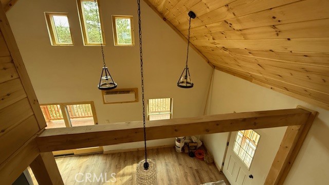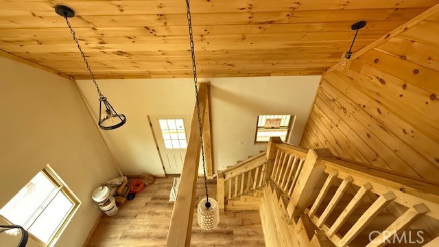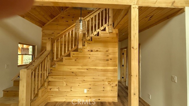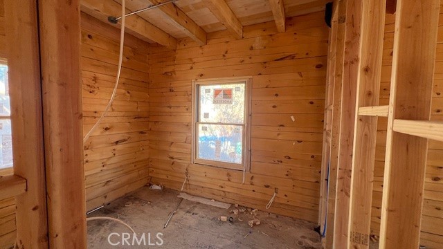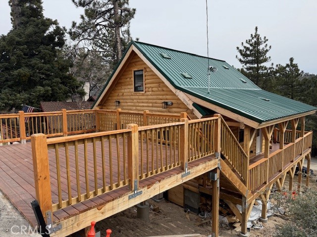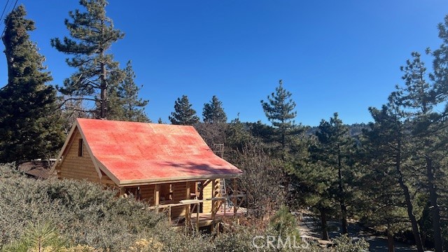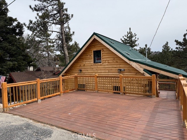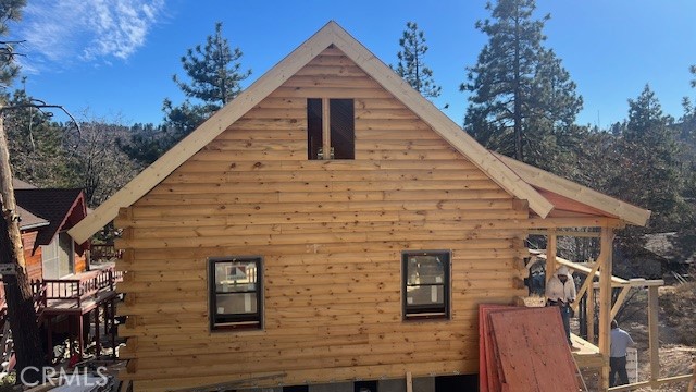Here is Your Rare Opportunity to own this charming true log cabin which offers a peaceful retreat in the heart of the mountain resort of Green Valley Lake. Surrounded by towering pines and panoramic vistas, cabin boasts breathtaking views of the rugged peaks and serene valleys. This two bedroom layout complemented by a cozy loft bedroom provides plenty of space for relaxation and hosting family events. The rustic log architecture features kiln-dried pressure treated wood finishes, vaulted ceilings and large windows that flood the space with natural light, offering a seamless blend of indoor comfort and outdoor beauty. This is one-of-a-kind custom home in Green Valley Lake, that also features a fire retardant metal roof and a Fire Suppression sprinkler system throughout the home. The community adds to the appeal with access to a private lake, perfect for fishing, kayaking, boating and swimming or simply enjoying the tranquil setting. Buyers may continue the construction on the unfinished basement adding approximately another 700+ square feet. This is a must see home!