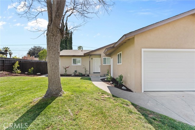 This highly upgraded single-story home offers private gated RV parking, a two-car garage, and a new roof, all set within a well-established neighborhood with mature landscaping and curb appeal. Floor plan opens to a large living room featuring a charming fireplace with mantle. The kitchen has generous cabinetry and counter space, a built-in microwave, range, double sink, and dishwasher, ideal for both daily living and entertaining. The bedrooms are spacious and well laid out, with the primary suite featuring a private bathroom. Step outside to a backyard with lush lawn areas and ample space to design your perfect outdoor oasis, complete with a covered patio ideal for relaxing or hosting guests. Additional highlights include updated solid-surface flooring, fresh neutral interior paint, updated fixtures, windows, ceiling fans, custom window treatments, and remodeled bathrooms. Conveniently located near schools, parks, shopping and freeway access.