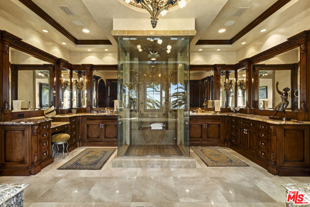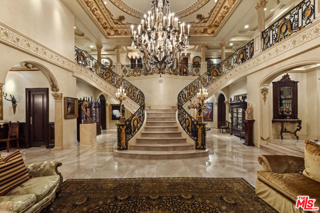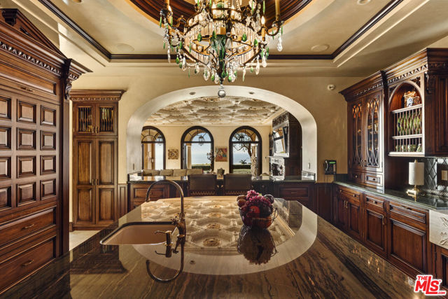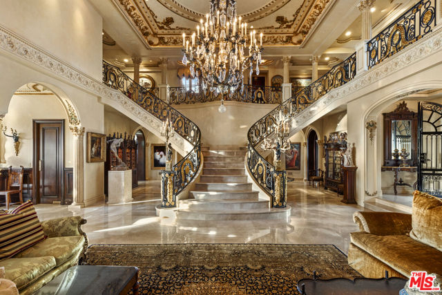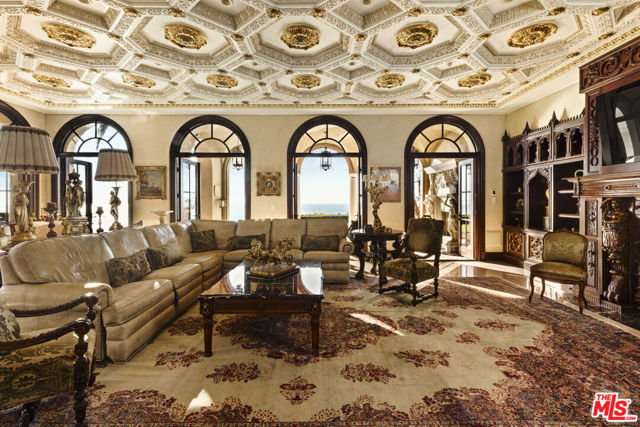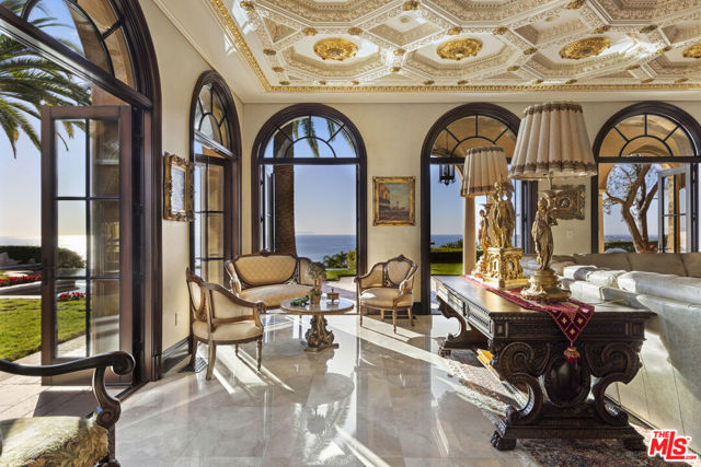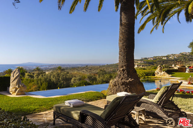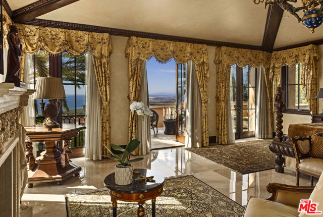 Chateau Soleil is a French chateau-inspired masterpiece perched atop the hills of Newport Coast within the ultra-exclusive Crystal Cove enclave. This extraordinary estate commands sweeping ocean views stretching from the peninsula to Catalina Island. Custom-built with uncompromising attention to detail, the residence showcases unparalleled craftsmanship and finishes throughout. Imported stonework, rare materials, and one-of-a-kind antique pieceseach thoughtfully curated from around the world, including every chandelier define the home's timeless elegance. Arrival is nothing short of cinematic, greeted by two mature olive trees and a manicured garden adorned with classical water features that guide you to the grand entrance. The opulent foyer opens to a breathtaking living room crowned by a dramatic 28-foot ceiling and illuminated by a palatial Louis XV Baccarat chandelier, crafted after a model by renowned French sculptor Jacques Caffieri. A grand staircasean exquisite replica of the Titanic railing with gold-plated detailing leads to the second level. Also on this floor, the office is a true work of art, featuring hand-carved mahogany wall panels and a richly coffered ceiling. The formal dining room centers around a magnificent 15-foot table accommodating up to 12 guests and opens to the expansive backyard with dramatic ocean views. The world-class kitchen is designed to Michelin-chef standards, outfitted with dual oversized refrigerators, Viking appliances, a La Cornue gas range, and an impressive center island. Adjacent is a casual dining area accented by a stunning Murano chandelier. The spacious family room embodies European elegance with a massive fireplace, ornate coffered ceilings, and multiple French doors that open onto the enchanting backyard. The residence offers four bedrooms, including one on the main level and three upstairs. The expansive primary suite is a private sanctuary featuring a sitting area with an elegant fireplace, French doors opening to a generous private terrace overlooking the pool and sweeping ocean views, and a lavish en-suite bathroom with a soaking tub, separate shower, and dual walk-in closets. An elevator descends to the lower-level entertainment floor, complete with a game area, full bar, and spa retreat featuring a steam shower and sauna. The neoclassical private cinema is a masterpiece of its own, adorned with red silk walls and rare figural torchres by Antoine Durenne, Paris, circa 1900. The backyard is a serene oasis with an infinity-edge pool and integrated spa, expansive lawn, romantic seating areas, and a fire pitall framed by breathtaking coastal vistas. The subterranean garage can accomodate 5-6 cars. The scale, craftsmanship, and architectural pedigree of Chteau Soleil make this estate a truly one-of-a-kind masterpiece, offering an unparalleled lifestyle of elegance, privacy, and world-class luxury.