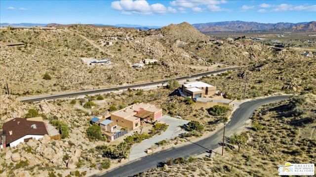 Stunning Santa Fe-Style Home in Western Hills Estates. This custom-built 3-bedroom, 2-bath home sits on over an acre of land, surrounded by the iconic boulders of Western Hills Estates. Located just two minutes from downtown Yucca Valley and close to all the High Desert's attractions, this property offers both convenience and serenity. Inside, you'll find 10' high ceilings and an open-concept layout that seamlessly connects the kitchen and living room, creating a bright, airy space. The master suite features a cozy fireplace and en-suite bath, adding a touch of warmth and romance. Step outside to a backyard perfect for entertaining, complete with a built-in BBQ and outdoor fireplace, ideal for starry nights with friends or quiet evenings under the desert sky. The spacious side yard, with its dramatic boulders, offers endless possibilities for leisure spaces or a future pool. Don't miss this unique desert retreat schedule your tour today!