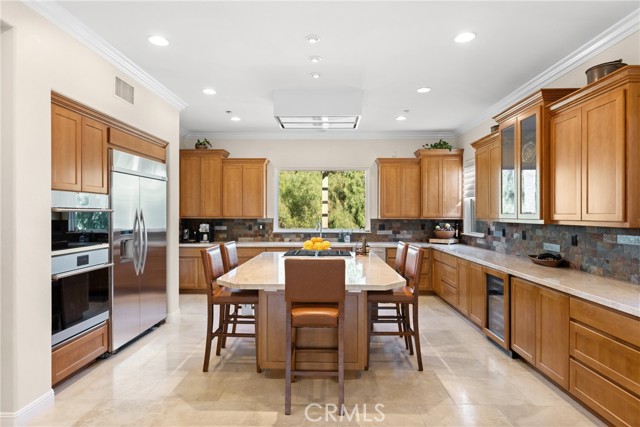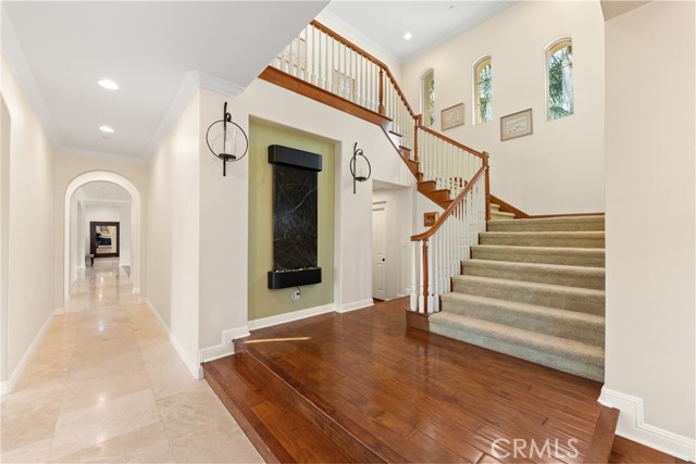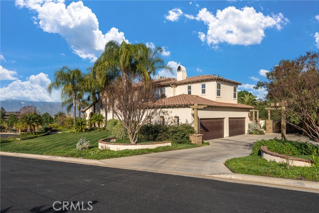 Custom-built with a commanding presence, drawing influence from Spanish and Mediterranean styles. Newly remodeled with luxury upgrades! City light and mountain views! At the end of a private cul-de-sac within the highly sought-after Smiley Heights district in South Redlands. The estate’s impressive, sweeping front lawn and tall, manicured palm trees provide a dreamy setting for your Mediterranean oasis. Through a stately arched portico and old-world double doors, step into a sizeable formal entry with travertine tile and a custom floor mosaic. High ceilings and plenty of tall windows elevate the space and fill it with warm, natural light. Plenty of room to host or simply relax in your own way with a family room, a living room, an office, a great room, and a huge dining room. All bedrooms feature en-suite baths and walk-in closets. But the crowning jewel is your spacious primary suite. Here you can lounge in peace in front of your custom fireplace or wake up to a gorgeous mountain view as you step out onto your own private balcony! Throughout the house, recent upgrades include new paint, crown molding, travertine and wood floors, new granite countertops, modern luxury lighting, new garage doors, a new tankless water heater, a whole-house water purification system, paid Tesla Solar & Battery, and so much more! The family room is wired with a speaker system and includes built-in cabinetry. Prepare meals like a pro in your dream kitchen, complete with new Taj Mahal Quartzite countertops, custom cabinetry with slide-out & touch control drawers and trash bins, stainless steel appliances, a wine fridge, a new kitchen island, new lighting, a walk-in pantry, and a butler’s pantry. Unwind in your custom backyard retreat, which boasts an edible landscape of strawberries, 12 grape vines, and over 20 different fruit trees! Korean grass and native pollinators complete the oasis, along with raised garden beds, a gas fire pit, and landscape lighting. Plenty of room for an RV. Fall in love with the natural beauty of San Timoteo Canyon as you hike the nearby Carriage Trail. Schedule a private showing today!