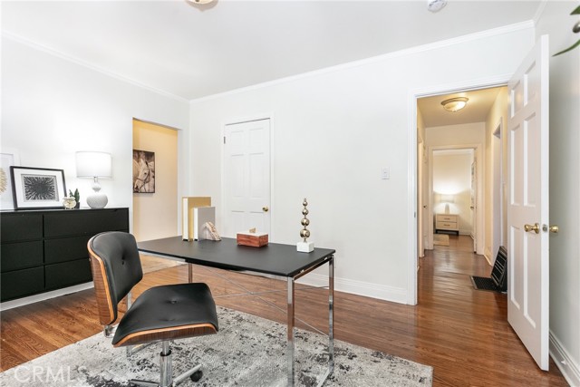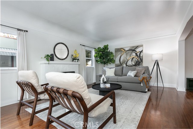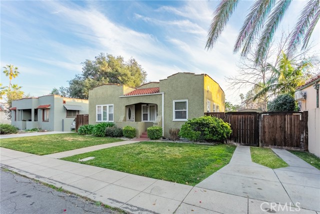 This single-story home is located in the north central neighborhood of Pasadena. It features a welcoming front yard and a detached garage with gated driveway access. Conveniently close to schools, local parks, cafés, and retail shops, Old Town Pasadena, the Rose Bowl, golf courses, hiking trails, and a variety of cultural attractions are all within easy reach. The living room is spacious and inviting with hardwood flooring and a fireplace. Abundant natural light flows in through the windows, creating an open and comfortable setting for everyday living, with easy flow into the formal dining room suitable for gatherings. The open kitchen includes recessed lighting, ample cabinetry, granite countertops, a mosaic tile backsplash, tiled flooring, and stainless steel appliances. An adjacent breakfast nook provides space for casual dining. The home includes two bedrooms offering comfortable accommodations and flexible use. The full bathroom features a tub-and-shower combination with tiled finishes for easy upkeep. A separate laundry room provides ample storage space for household needs. Spend leisurely afternoons in the south-oriented backyard, which offers a pleasant outdoor environment with a built-in fire pit seating area suitable for relaxation, gatherings, and alfresco dining. Mature landscaping and fencing add a sense of privacy. The outdoor space provides a comfortable and versatile area for entertaining and enjoying the peaceful, tranquil neighborhood..