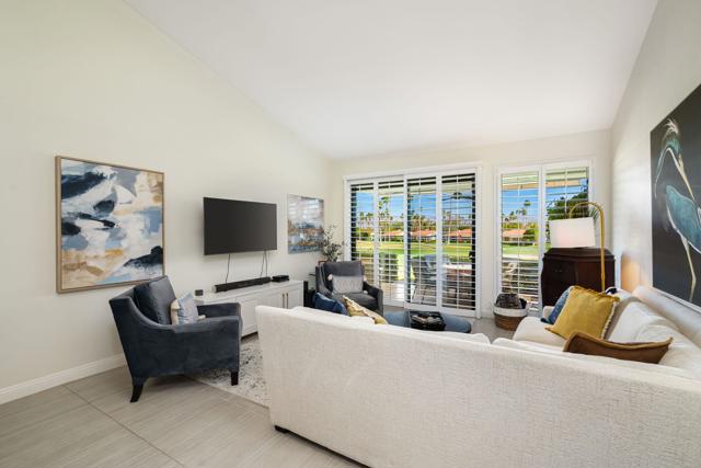 Designed for comfort and flow, this home features a spacious open-concept layout ideal for both everyday living and entertaining. Generously sized bedrooms provide privacy and flexibility, while the primary suite offers a peaceful retreat after a day on the course or by the pool. Thoughtfully planned interiors allow for seamless indoor-outdoor living--perfect for enjoying the desert climate year-round.UPGRADES: Newer Water Heater, AC Unit, AC Duct System, New plumbing throughout the home, Auto Retractable Awning, Outside Fan with light,, Remodeled Kitchen and Bathrooms, Newer Tile floors, Drip system outside, New garbage disposal, All dual Pane Windows with Shutters and Insulated Garage