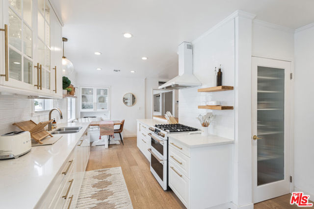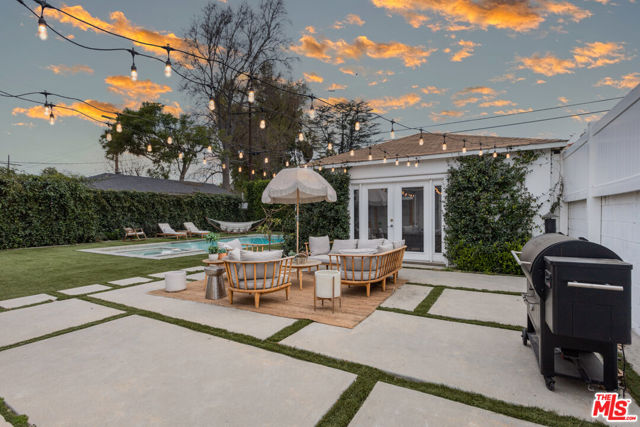 Beautifully renovated and fully furnished single family pool home located in a magical pocket in Toluca Lake is available for rent, long or short term. This gorgeous 3 bed/3 bath gated home is tucked away behind lush hedges and has a large dreamy backyard with a little converted garage/bonus space out back! Contemporary finishes enhance the bright, airy feel of the home, with plenty of natural light illuminating every corner. The inviting living room features a cozy fireplace and a quaint reading nook. The kitchen is well equipped with top-of-the-line appliances, white quartz countertops, and an eat-in breakfast nook. Steps lead down to the spacious family room, which offers a picturesque view of the sprawling backyard. A pool and spa await, alongside an outdoor dining and lounging area complete with a barbecue, all illuminated by string lights. Generous primary suite includes a luxurious ensuite bathroom featuring a soaking tub. Conveniently located in the heart of Toluca Lake, this residence offers easy access to nearby shops and amenities.