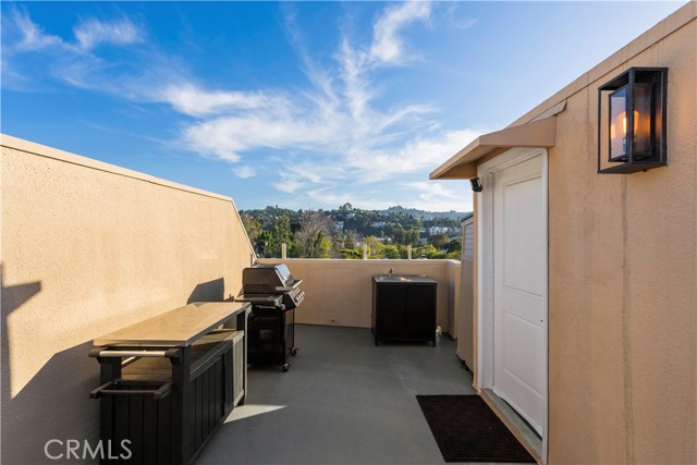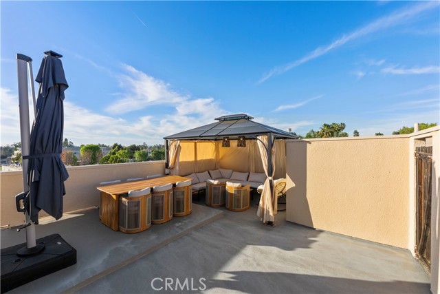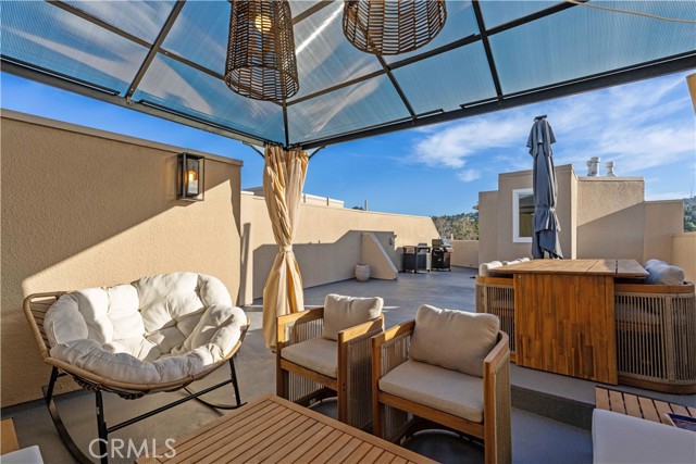 Exceptional 700 SQ FT Private Rooftop Deck | Designer-Renovated Penthouse | 2 Bed + 2 Bath | Top Floor Corner Unit | Prime Colfax Meadows Location. Stunning top-floor residence in an intimate 14-unit building, featuring a rare 700 sq ft private rooftop deck accessed by an interior staircase, offering expansive skyline views and an ideal setting for entertaining or relaxing. This beautifully renovated 2-bedroom, 2-bath corner penthouse has been thoughtfully upgraded throughout with no expense spared. Highlights include refinished hardwood flooring, imported Italian tile, custom cabinetry, new designer lighting, and brand-new dual-pane windows. The bright, open-concept layout boasts tall ceilings, oversized windows, and two private balconies that fill the home with natural light. The spacious primary suite features a spa-style bath, walk-in closet, and custom motorized shades. The secondary bedroom is generously sized and perfectly suited for guests, a home office, or flexible living needs. Building amenities include a fitness room, sauna, billiard room, secure keyed entry, and two assigned parking spaces with a dedicated EV charger installed. Ideally located just moments from Tujunga Village and Ventura Boulevard, this turnkey home delivers modern luxury in one of Studio City’s most desirable neighborhoods.
