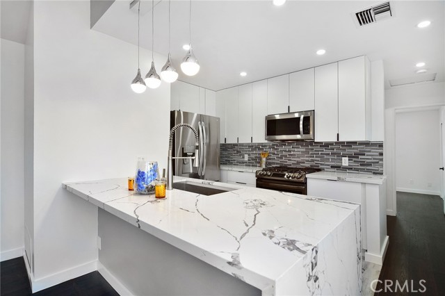Two for the price of one!! An incredible Tarzana "South of Blvd" ADU lease opportunity for you. This one is truly special. Gated & ideally situated for cherished privacy. Two beautifully renovated structures afford many options. First, discover a sensational one-bedroom, one-bath ADU with dazzling designer touches. Large living room with recessed lighting & a stunning new kitchen offering exquisite quartz counters, quality stainless-steel appliances (including a refrigerator) & gorgeous tile. Spectacular bath offers a large shower with soothing rain-head. Laundry area affords brand-new machines. The north auxiliary living quarters welcomes you with an outdoor covered dining/relaxation area. Inside, a spacious living room, bedroom & wonderful bath await. This structure is ideal for a home office, studio, gym or more...can not be used for a permanent residence. Must see to believe! ADU Address is 5350 Tampa Ave.