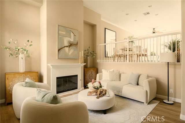 Located in one of Fullerton’s most desirable neighborhoods, this beautifully maintained tri-level home sits in the sought-after Amerige Heights “Radcliffe” community by renowned builder MBK Homes. Tucked into a quiet interior location, the welcoming front porch sets the tone for relaxed, upscale living. The home features 3 bedrooms, 2.5 bathrooms, and a private layout with no one above or below. The living room offers a cozy tile fireplace, while brand new wood like luxury vinyl and tile flooring run throughout. The open-concept kitchen includes granite counter tops, white cabinetry, black appliances, stainless steel dishwasher, center island, and adjacent dining area, ideal for everyday living and entertaining. The spacious primary suite offers dual sinks, separate tub and shower, and a large walk-in closet. Additional highlights include recessed lighting, crown molding, ceiling fans, upstairs laundry, powder room, and direct access to an oversized 2-car garage with storage and workspace. Guest parking is conveniently nearby. Enjoy resort-style HOA amenities including pool, spa, tennis courts, clubhouse, high-speed internet, and beautifully maintained grounds. Walking distance to top-rated schools such as Robert Fisler Elementary/Junior High, Sunny Hills High School, Arborland Montessori, and Amerige Heights Shopping Center. Close to parks, golf, dining, and shopping.