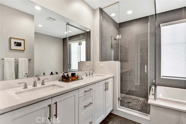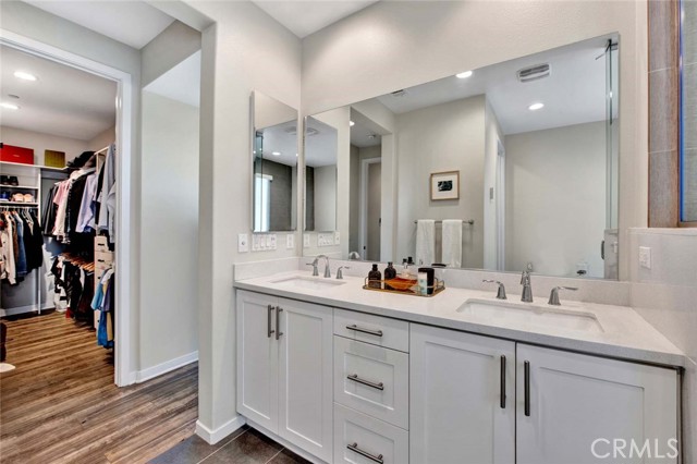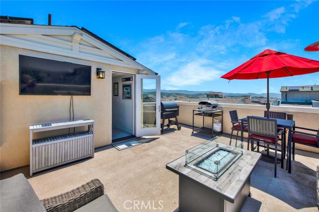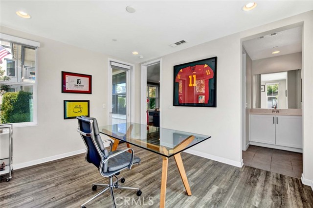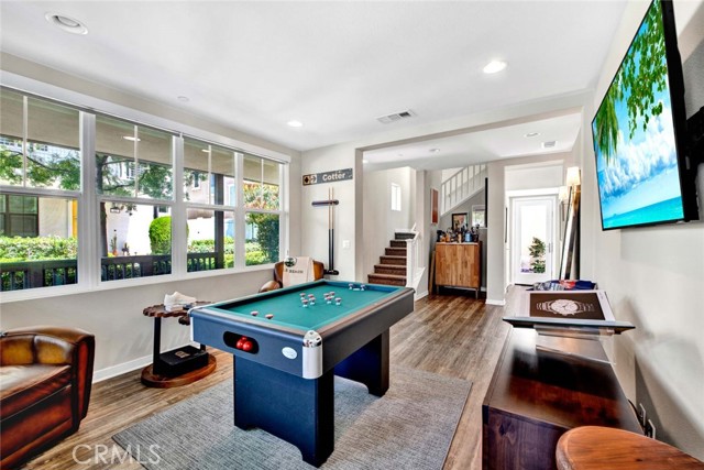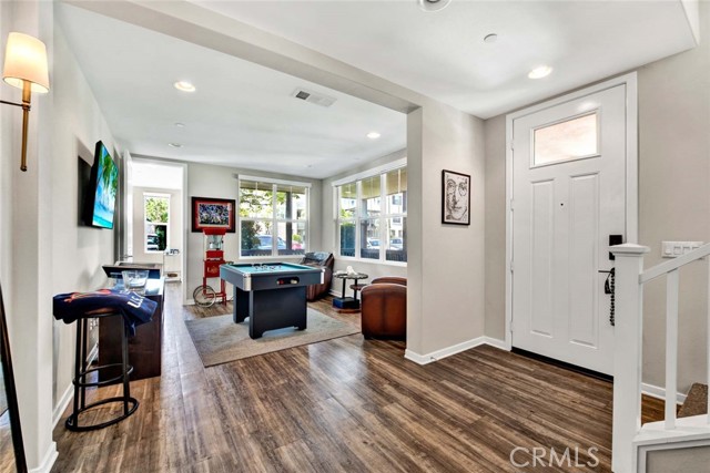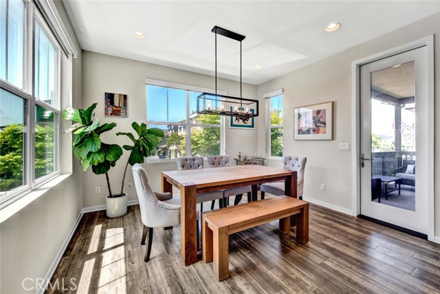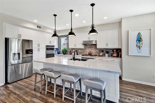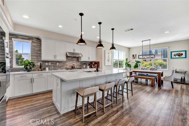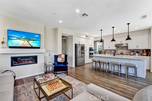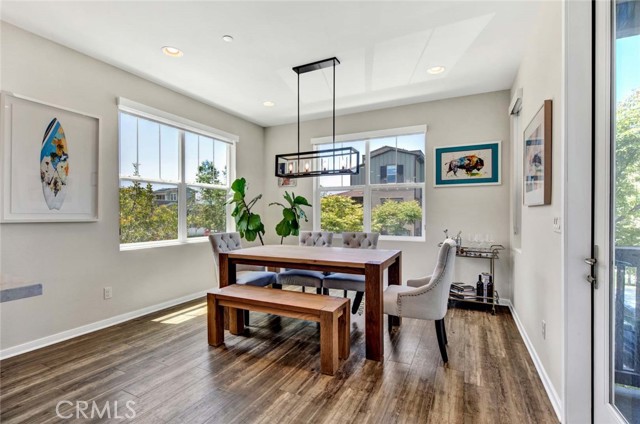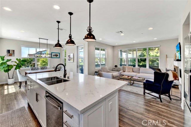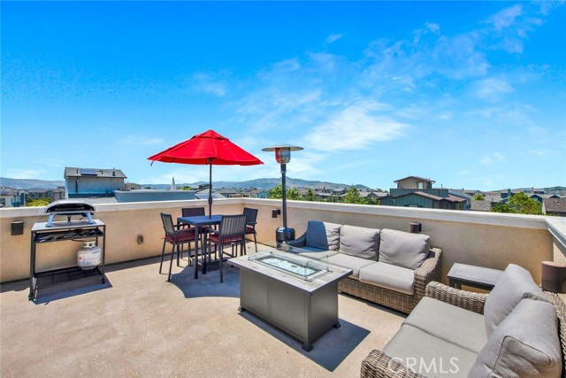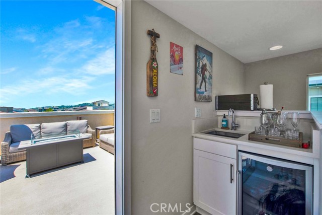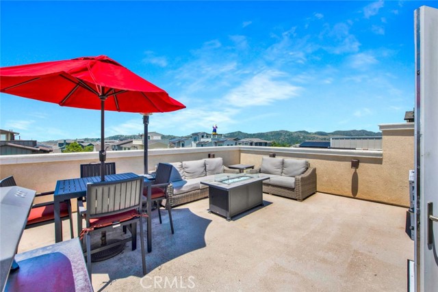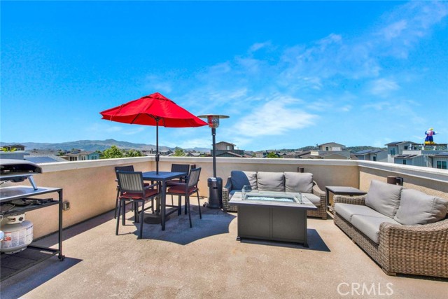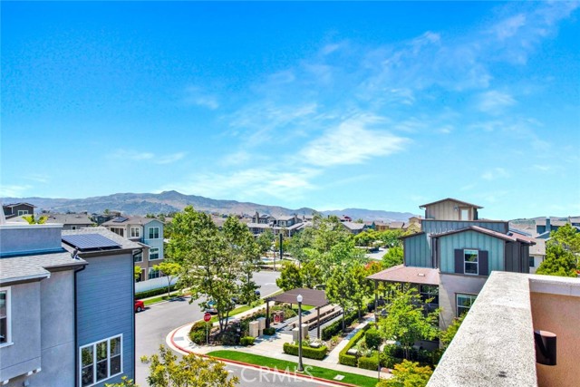 Fabulous multi-level home crowned with a huge roof top deck! In the Esencia development of Rancho Mission Viejo, this luxury living opportunity awaits! Fantastic amenities include Esencia Sports Park with baseball diamonds, soccer/football field & sports courts, several pools, clubhouses, parks, playgrounds and so much more! The entry of the home faces a lushly landscaped walkway between 2 rows of homes. There's a big porch at the entry that opens to a foyer with a bonus room or living area to the right and just beyond is ensuite bedroom currently used as an office. This can be a full living suite with a living area, bedroom suite with private bath with walk-in shower, a separate entrance and access to the yard with a putting green through double French doors. On the second level, you find an open concept living area with a grand gourmet kitchen with a large island offering bar seating for four. Stainless steel appliances include a 5 burner gas cooktop, 2 gas ovens, microwave oven, dishwasher and a French door refrigerator with water in the door. The kitchen also features pristine white Shaker style cabinets topped with quartz counter tops with a random pattern tile strip backsplash. There's a spacious dining room with a contemporary chandelier and access to the wrap around balcony. The adjacent living room has a fireplace and overlooks the wrap around front balcony. There are also powder and laundry rooms on this level. On the third level, there's a sumptuous owner's suite with a huge walk-in closet and an opulent private bath featuring a walk-in shower, double vanity, luxurious soaking tub and a privacy door to the commode. There are also 2 spacious secondary bedrooms with ample closet space that share a full bath. Another flight of stairs takes you to a wonderful roof top patio with an indoor wet bar, and abundant space for an outdoor seating area and a dining area, plus plenty of room for your outdoor appliances. There are 2 ground level patio areas including the putting green off the main floor suite and a lush garden area on the opposite side. The attached 2 car garage has direct access to the ground level foyer and an EV charger. For families with school age children, Esencia K-8 is within the development, and Tesoro High School is less than 10 minutes away! Nearby shopping & dining is also just minutes away. With so many things to do in your own neighborhood,you'll never want to leave! This is a wonderful place to call home. Come make it yours!