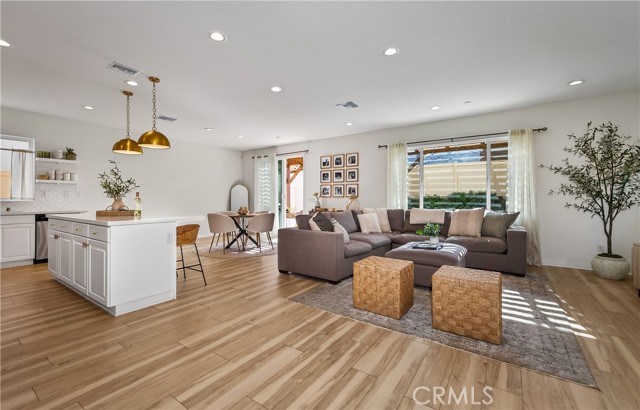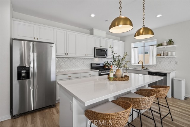 This home truly checks all the boxes: Prime location in the Spring Mountain Ranch community, smart layout, modern upgrades, and an easy, low-maintenance lifestyle. Ideal for a first-time buyer, growing family, or savvy investor, this thoughtfully designed residence offers comfort and functionality throughout. The open-concept first floor seamlessly blends the kitchen, living, and dining areas—perfect for everyday living, entertaining, and multitasking. The kitchen is a standout, featuring a large center island, upgraded quartz countertops, stylish backsplash, pendant lighting, recessed canned lights, and upgraded cabinetry, all complemented by durable vinyl flooring and 9-foot ceilings that enhance the sense of space and light. Media cord-hiding outlets add a clean, modern touch. Upstairs, you’ll find all three bedrooms, a versatile loft ideal for a home office, gym, or play area, and a convenient laundry room, keeping daily routines efficient. The bedroom layout offers privacy and separation from the main living spaces, while a downstairs half bath is perfect for guests. Additional highlights include: Leased Solar at approx. $117/month Low HOA of approx. $110/month Open floor plan with abundant natural light. Upgraded lighting and finishes throughout. Located in a well-maintained community close to shopping, dining, schools, and commuter routes, this home delivers modern living with long-term value. Come see if this is the home for you before it is gone...