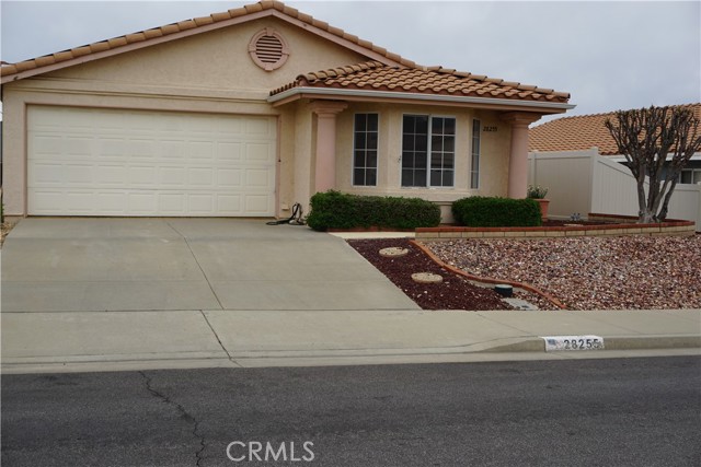 Home is located in the 55+ community of Casa Blanca Villas HOA in Menifee. It has 2 Bedrooms and 2 Bathrooms within 1,065 sq ft. The rear yard has a large patio with patio cover and a fruit tree. Laundry area is located in the 2 car garage which has access to side yard and direct access into home. Master Bedroom and bathroom are at rear of home with a nice size guest bedroom at the front. Home has leased Solar which includes an inverter and 2 Back up Batteries for storing power. The Casablanca Villas HOA has a nice clubhouse with many amenities and activities plus a pool, spa and tennis courts.