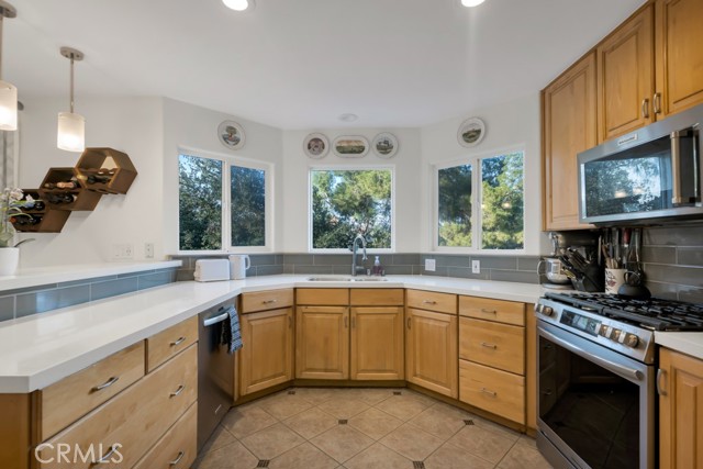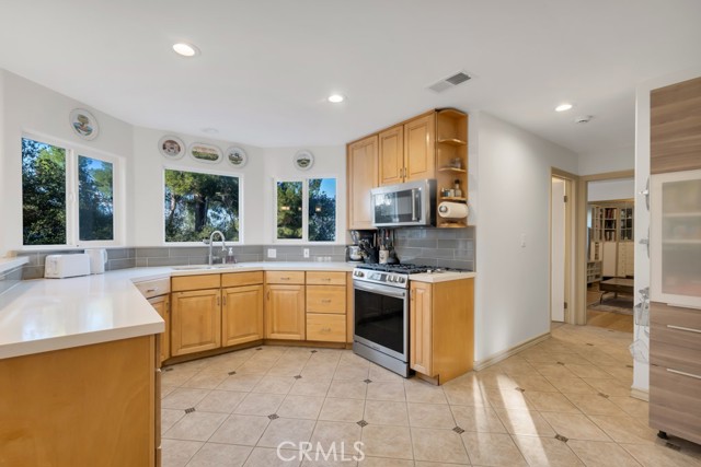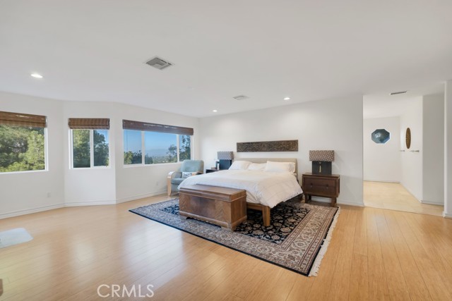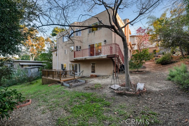 Incredible 3-Level Custom View Home in the Calabasas Highlands | Perched above sweeping mountain and valley vistas, this light-filled residence offers tranquility and privacy in one of the best-kept secret enclaves of Calabasas: The Highlands. A welcoming foyer opens to the main level, where a formal living room with a cozy fireplace flows seamlessly into the dining room just off the kitchen. Framed by expansive windows and its own private balcony, the dining area captures breathtaking views, creating the perfect backdrop for everyday living and elevated entertaining. A guest bedroom and full bath complete the entry level, offering ideal flexibility for visitors or multigenerational living. Upstairs, a graceful, curved staircase leads to two additional bedrooms and a full bath. Skylights bathe the upper level in natural light. The expansive primary suite is a true retreat, featuring massive windows with sweeping views, a private balcony, and a serene enclave perfect for yoga, reading, or a home office. The spa-inspired primary bath showcases travertine finishes, a soaking tub, a large separate shower, dual sinks, and a generous walk-in closet. The lower level features a spacious bonus room with tiled floors and sliding glass doors that open to the patio and backyard. Complete with a wet bar and charming spiral staircase, this flexible space is ideal for a rec room, creative studio, media room, or private office with its own separate entry. Throughout the home, solid hardwood maple and bamboo flooring enhance the warmth and character, while windows in nearly every room invite in natural light and frame the stunning surroundings. Outside, enjoy a spacious front porch and a large backyard with deck designed for both relaxation and gardening, all set against a backdrop of fabulous mountain and valley views. Located just off scenic Mulholland, this tranquil sanctuary offers immediate access to multiple hiking trails in the Santa Monica Mountains, while remaining minutes from shopping, dining, and everyday conveniences. The Calabasas Highlands offer the best of both worlds, blending the laid-back, nature-filled vibe of Topanga with the everyday convenience and prestige of Calabasas. Served by the acclaimed Las Virgenes Unified School District and in close proximity to Viewpoint School and Pepperdine University, this home delivers natural beauty and an exceptional lifestyle opportunity.