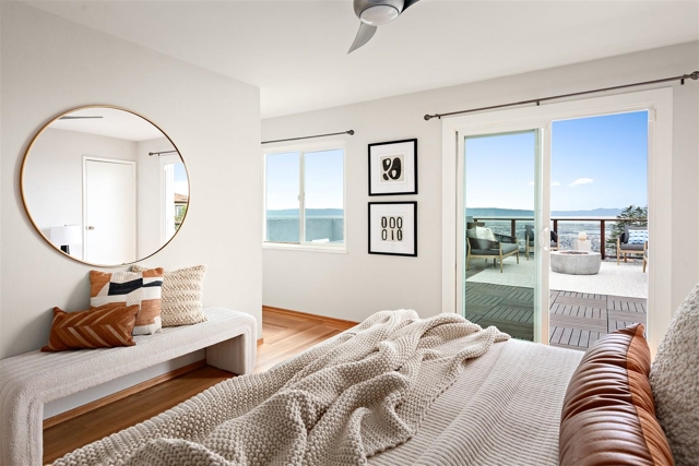 Cool mid-century home, updated and transformed into an entertainer's dream, with fabulous interior flow and a design that seamlessly ties indoor and outdoor spaces together. Multiple glass doors welcome uninterrupted views of the bay and beyond into the primary bedroom, living/dining room and family room. This home is all about the lifestyle, from its large and level garden terraces to the huge roof deck, and from the hot tub to the expansive family room including a built-in bar. The living/dining room shows off glorious views as well as a fireplace set in a wall of travertine to keep things cozy on cold days. The kitchen and bathrooms have all been tastefully updated with modern amenities, with walls clad in tile that is contemporary but blends comfortably with the home's mid-century vibe. All three bedrooms sit a few steps up from the primary entertaining areas, setting them apart and creating a sense of privacy. The two secondary bedrooms look out upon a length of undeveloped parkland area. This is a special place, beautifully situated near everything yet far enough to feel calm.