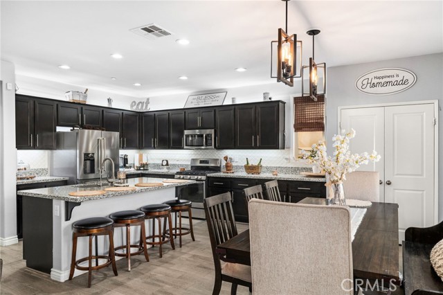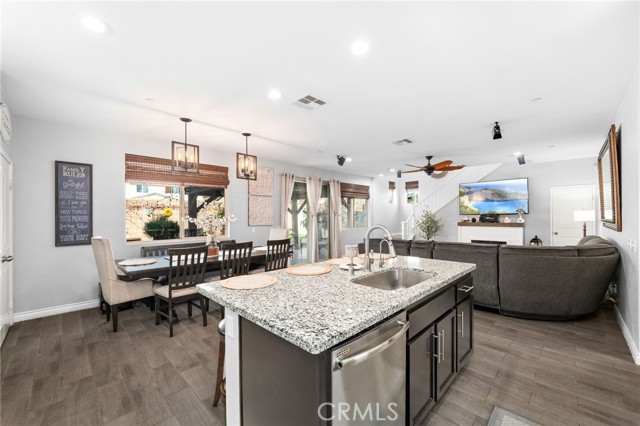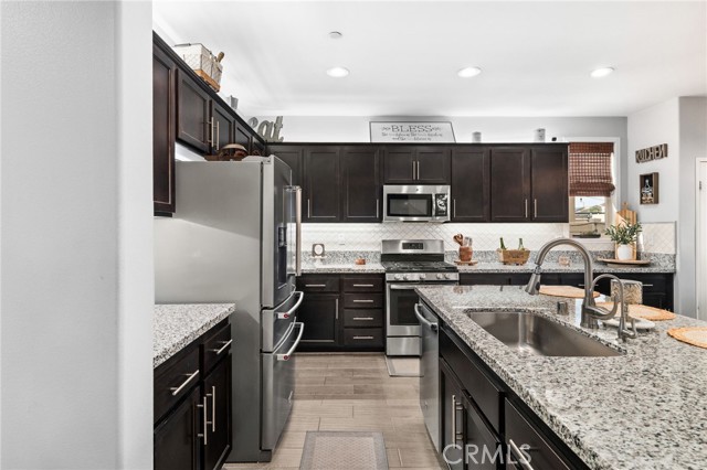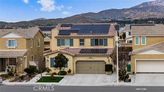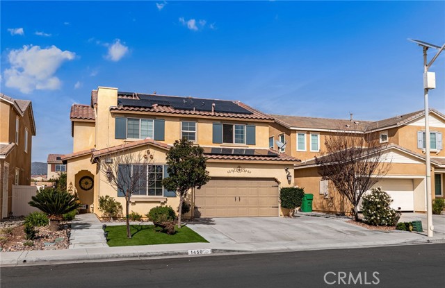 Stunning 2-Story Home in Desirable Sundance North – Beaumont, CA. Welcome to this beautifully maintained 4-bedroom, 3-bathroom. From the moment you arrive, you’ll appreciate the inviting curb appeal and professionally landscaped, low-maintenance front yard. Inside, tile flooring and neutral paint tones create a bright and welcoming atmosphere throughout the main level. The thoughtfully designed open floor plan features a spacious great room that seamlessly connects the living and dining areas to the upgraded kitchen complete with granite countertops, stainless steel appliances and an oversized island ideal for gathering and entertaining. Large sliding glass doors bring in abundant natural light and open to the beautifully maintained backyard. The main level offers a private guest bedroom and full bath, perfect for extended family or visitors. Upstairs, you’ll find generously sized secondary bedrooms and a spacious primary suite featuring a large walk-in closet, soaking tub, and dual-sink vanity. The conveniently located upstairs laundry room adds everyday ease and functionality. Step outside to enjoy the backyard retreat with a patio area, mature fruit trees, and professionally designed low-maintenance landscaping — perfect for relaxing or entertaining. Additional highlights include: Solar panels for energy efficiency, expansive two-car garage and extended driveway with parking for up to three additional vehicles. Access to resort-style community amenities including a pool, spa, fire pit, BBQ and outdoor cooking areas and playgrounds. Close to shopping, schools and the 10 freeway. Don’t miss this incredible opportunity!