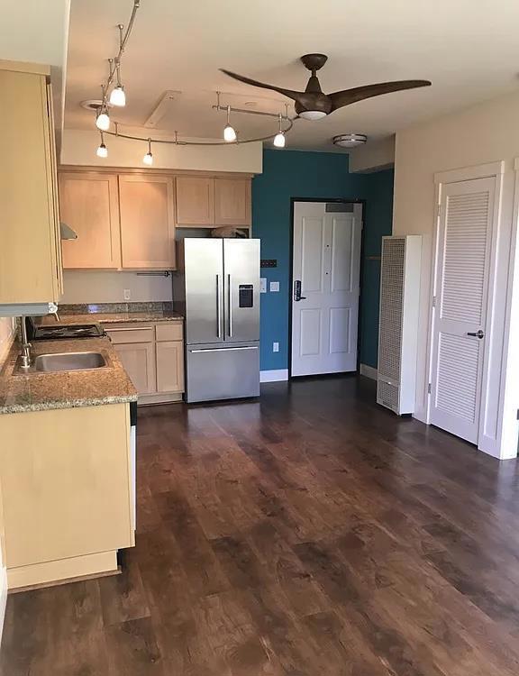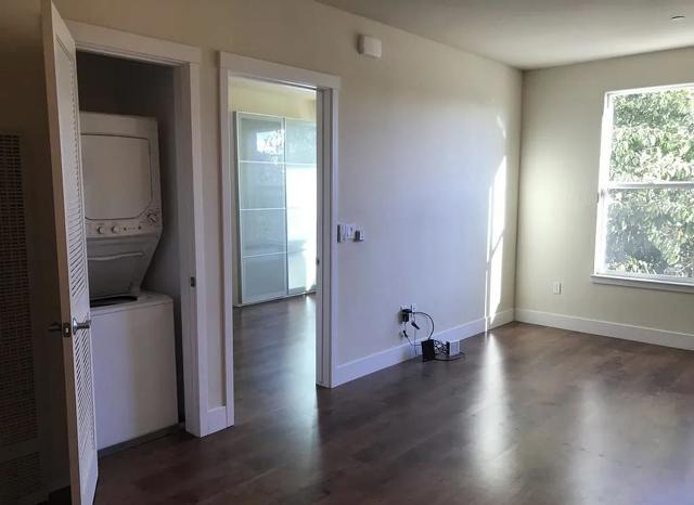Available: Apr 13th Application Fee is required. No move-in Fee No Pet Fee Step into this beautifully maintained 1BD/1BA unit, where rich hardwood floors flow seamlessly throughout. Double-paned windows invite in natural light, while your private balcony offers a peaceful spot to unwind. The kitchen is designed for both style and function, featuring all-electric stainless steel appliances including dishwasher, stove, microwave hood, and fridge plus generous cabinet space for all your essentials. The bedroom provides a roomy closet and an added built-in wardrobe for extra storage. In the bathroom, you'll appreciate the large, walk-in shower and the convenience of a stacked washer and dryer tucked neatly inside. Every detail has been thoughtfully considered. Comfortable, efficient. This gem won't last long.
