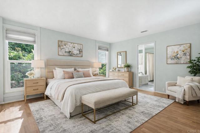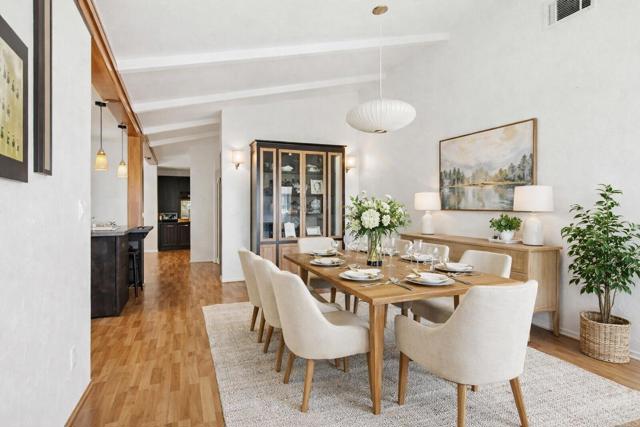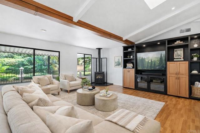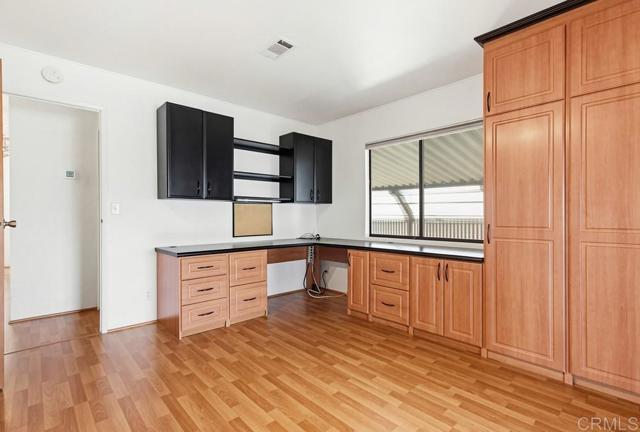 Welcome to this beautiful 2 bedroom, 2 bath home in the desirable Palomar Estates West. At approximately 2,040 square feet, this residence is one of the largest homes in the community. Vaulted ceilings in the living and dining areas enhance the open, airy feel and create an inviting sense of space. The expansive kitchen features wood cabinetry, granite countertops, and an island ideal for both everyday living and entertaining. Wood laminate flooring flows throughout the main living areas, with tile flooring in the bathrooms and laundry room for added durability and style. The spacious primary suite offers a walk-in closet and a well-appointed en-suite bathroom complete with a tub, shower, and dual vanity. The secondary bedroom is currently set up as a home office with custom cabinetry and a built-in desk. Enjoy Southern California living at its finest with beautifully landscaped grounds and a large front and side patio, perfect for relaxing or entertaining outdoors. The property also includes two storage sheds for added convenience. Palomar Estates West is a desirable rent-controlled 55+/35+ senior community offering an array of amenities, including a clubhouse, pool, spa, fitness center, putting green, pickleball courts, and tennis courts. Ideally located just minutes from shopping, restaurants, golf courses, as well as our beautiful Carlsbad beaches. Please note that some photos have been virtually staged.