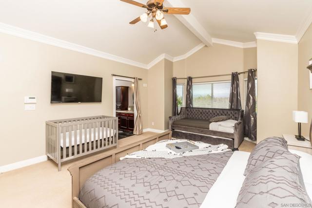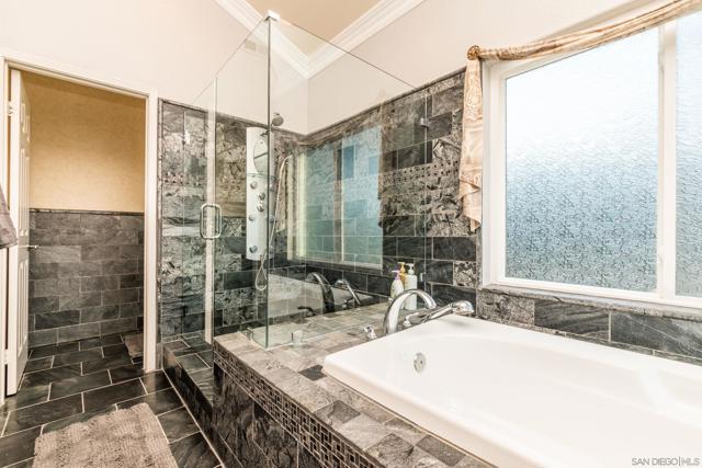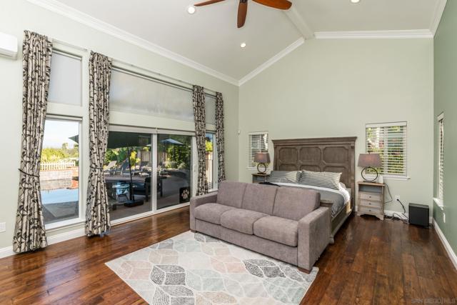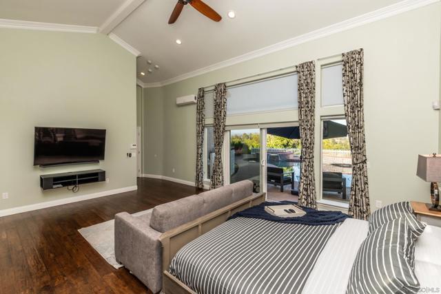 Stunning Upgrades and Spectacular Views! From the moment you step inside, you'll notice the impressive custom renovations throughout this expansive home with over 5 bedrooms—including two primary suites, one of which is downstairs with serene views of the pool and mountains. The kitchen, fully remodeled in 2015, features high-end Bosch appliances (convection hood, range, microwave, and oven), modern recessed/pendant lighting and a spacious redesigned layout centered around a large island w/ seating. The breakfast nook boasts a custom built-in bench with hidden storage. Bedrooms are generously sized, and all bathrooms have been beautifully updated. The home includes copper plumbing, energy-efficient Low-E vinyl windows and sliders, and a striking wrought iron staircase. An oversized 4-car garage complements the 13.6 kW solar system that powers the entire home, including an EV charger. The tiered backyard is an entertainer’s dream—featuring a retiled pool and spa with separate solar heating, an outdoor kitchen, firepit, basketball court, motorized awning, and fruit trees—all set against a backdrop of breathtaking views. Additional highlights include an upgraded security system and a drought-tolerant front yard. Every detail of this home reflects exceptional craftsmanship and thoughtful design.