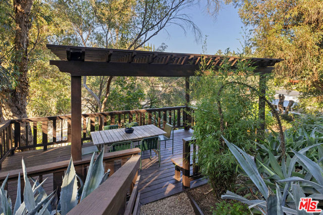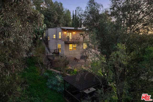 Perched in the scenic hills of Highland Park, this updated Mediterranean is your private retreat with generous proportions and spellbinding views. The open-concept main level is filled with light, an expansive living space with hardwood floors, a fireplace, and stunning vistas reaching all the way to the Griffith Observatory. The remodeled kitchen is ready for action with stainless appliances, a breakfast nook, and French doors to the balcony for morning coffee. Three bedrooms include a primary suite with a spa-like bath, walk-in closet, and a private balcony; a spacious den provides versatility for work or creative use. The lush grounds are an idyllic setting for relaxing, with multiple decks and a gazebo made for gatherings and dining al fresco. Amenities include Central AC and an attached two-car garage. Enjoy exceptional privacy provided by the natural hillside boundary, just moments from the dining, shopping and amenities on York and Figueroa.