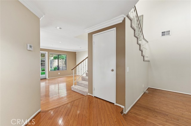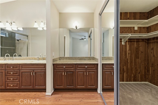 Come take a look at this beautiful home in the highly desired "Village at San Dimas"! As you walk up to the property there is a gated courtyard. Wonderful to sit out on, sip your morning coffee, and enjoy the sounds of nature. The double door entry will lead you a large entryway and beyond that, to the right, into a formal living room. The living room has beautiful wood flooring (as does most of the downstairs), amazingly high ceilings, and a huge fireplace (with a light placed above it to show off anything you might put, or hang, on the fireplace). Beyond that you will find a half bath and a Laundry room. Laundry room leads to the oversized, attached garage complete with shelves on one side and cabinets on the other side. Leaving the living room and heading the other way you come to a very large room, usually used for the family/dining room combination. These rooms have lots of windows and French doors leading to the backyard. To the left of the dining room is the kitchen, complete with garden window, newer cabinets, granite counter tops and stainless steel appliances. The stairway leading to the second level is very wide and the upstairs is very spread out and spacious. Master bedroom is very large with recessed reading lights installed above where the bed is usually placed. Master Bath features a make up area, walk in closet, dual sinks, private toilet area and beautiful tub/shower combination. Additionally upstairs you will find 2 good sized secondary bedrooms and a hall bath (complete with walk in shower). The back yard has a large patio cover, artificial grass and colorful landscaping. There is a side gate you come to down a small path, as you pass the HUGE, newer A/C Unit. Home is within walking distance to Allen Elementary School and Ramona Middle School. Very convenient to Freeways, Shopping, Fine Dining, Fast Food, Trader Joe's, Movie Theater, Raging Waters, Bonita High School, La Verne, Claremont, Azusa and Pomona Colleges, pretty much everything you can think of!