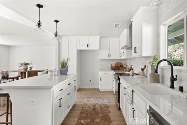 99% new! This brand new home is tucked away in an established neighborhood and has been taken down to the studs and floor plan has been reimagined for a modern look and feel. From the moment you step inside, you’re welcomed by a desirable open-concept layout, freshly painted walls, brand-new laminate flooring, and new windows that fill the space with warm, natural light. The spacious living room offers the perfect setting for cozy movie nights or gathering with friends and family. The fully renovated kitchen is a true showstopper. Thoughtfully designed with all-new stainless steel appliances, sleek quartz countertops, elegant white cabinetry, and a distinctive tile backsplash, it effortlessly blends style and function. An electric cooktop with a modern range hood and a large center island with breakfast bar seating make this space ideal for everything from quick morning bites to entertaining guests. Retreat to the expansive primary suite, where comfort meets luxury. This serene space features a generously sized closet and a spa-inspired ensuite bathroom complete with a new dual-sink vanity, ample linen storage, and a beautifully tiled walk-in shower. Additional highlights include ceiling fans throughout, updated fixtures, a new water heater, brand-new HVAC system, two spacious guest bedrooms, a fully remodeled guest bath, an indoor laundry room, and a large 30ft deep two-car garage. Step outside to enjoy a backyard designed for relaxation and fun, offering a patio area perfect for barbecues and plenty of lawn space for outdoor games or pets to roam freely. Conveniently located near everyday amenities, this home has been taken down to the studs and rebuilt better than ever. Don’t miss your opportunity to make this turnkey gem your own!