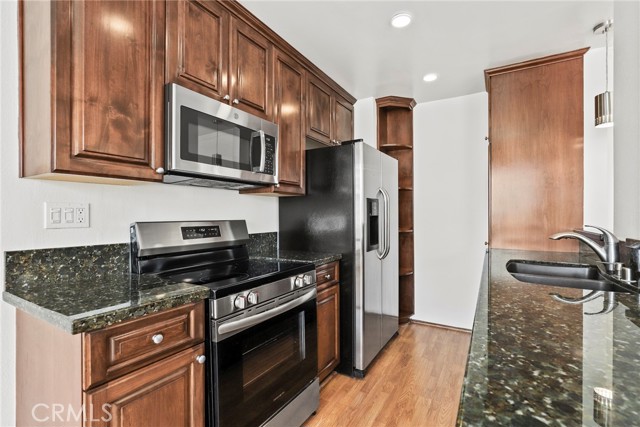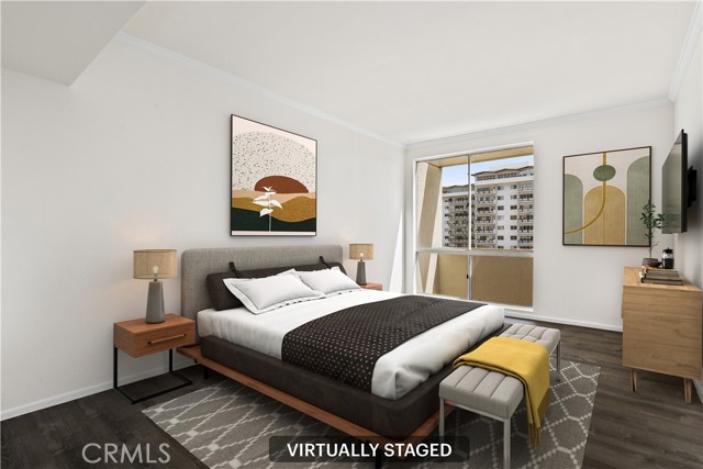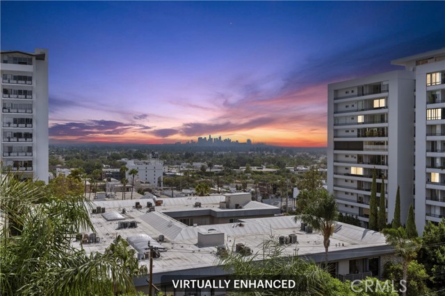 Proudly introducing this stunning 1-bedroom, 1-bathroom penthouse condo offering 731 sq ft of upgraded living space and panoramic skyline views, including the iconic Downtown Los Angeles cityscape. Located on the TOP FLOOR of the coveted Park Wellington, this beautifully updated unit combines luxury, comfort, and location in one incredible package. Step inside to find hardwood floors, a remodeled open-concept kitchen with granite countertops, stainless steel appliances, and a breakfast bar perfect for casual dining or entertaining. The spacious living area flows seamlessly to a large private balcony, ideal for soaking in the city lights and skyline sunsets. The bedroom features ample natural light, city views, and a generous walk-in closet. The remodeled bathroom boasts travertine tile, an elegant vanity, and a roomy walk-in shower—all freshly painted and move-in ready. Park Wellington is one of West Hollywood's premier full-service, resort-style communities, offering: 24-hour doorman/concierge and security, Heated year-round pool with lounge areas, Pergola-covered spa and sauna, North/south tennis court, Fitness center, Lush grounds and a professionally managed HOA. Just moments away from the best of West Hollywood and the Sunset Strip—including world-class shopping, dining, and nightlife!!