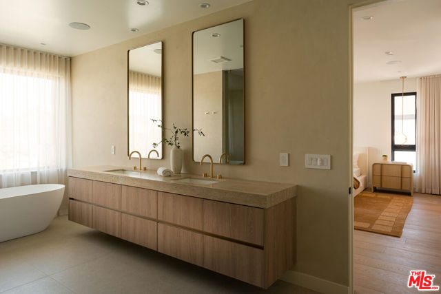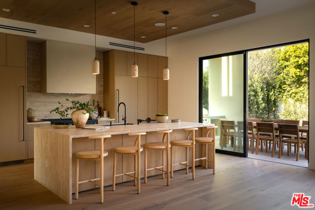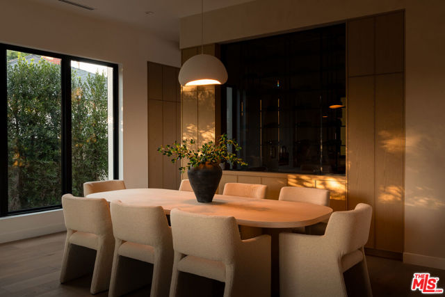 Set at the end of a tranquil cul-de-sac in one of Sherman Oaks' most coveted enclaves, this newly constructed estate is a masterwork of modern organic designwhere architectural artistry, exceptional craftsmanship, and timeless luxury converge. Encompassing approximately 4,758 square feet, the residence offers 6 bedrooms, 6 bathrooms, and an atmosphere of effortless refinement and privacy curated and built by Urban Culture Design and Development.From the moment you enter, the home reveals a meticulously curated interior defined by soaring ceilings, sculptural archways, museum-quality finishes, and a seamless blend of texture and light. Wide-plank French oak floors flow throughout, anchoring spaces enriched by bespoke millwork, custom lighting, and thoughtfully composed designer motifs that create a warm, sophisticated, and enduring aesthetic.At the heart of the home lies a chef-caliber kitchen that embodies both beauty and performance. Anchored by an oversized limestone island, the space is outfitted with a professional-grade Bertazzoni range, handcrafted custom cabinetry, and an architectural two-sided wine display that serves as a striking visual connection between the kitchen and living areas. Designed for both intimate gatherings and grand entertaining, the space opens effortlessly to a covered patio with al fresco dining and a built-in BBQ, blurring the lines between indoors and out.The main level unfolds with elegant fluidity, featuring expansive living and family rooms centered around artisan fireplaces with custom built-ins. Just beyond, a dedicated entertainment wing elevates the home's lifestyle experiencea private home theater with integrated surround sound, a chic lounge with wet bar and refrigeration, and a flexible wellness studio ideal for fitness, creative pursuits, or guest accommodations. A gracious downstairs ensuite bedroom offers additional versatility as a private office or guest retreat.Upstairs, the primary suite is a sanctuary of unrivaled luxury and serenity. This hotel-inspired haven features a smooth plaster fireplace, custom dry bar, dual boutique-style walk-in closets, and a spa-caliber bathroom wrapped in exquisite stone and bespoke finishes. A sweeping private balcony spanning more than 370 square feet overlooks the resort-style grounds, offering a peaceful, elevated escape.The backyard is a study in understated elegancebeautifully landscaped and designed for year-round enjoyment. A smart-controlled pool and spa, multiple lounging areas, and impeccably manicured greenery create a secluded outdoor retreat ideal for both entertaining and quiet relaxation.Further enhancing the home's exceptional quality are owned solar, whole-home surround sound, and a fully integrated security systemeach carefully selected to complement a modern, effortless lifestyle.Perfectly positioned near top-tier public, charter, and private schools, and moments from the best dining, shopping, and conveniences Sherman Oaks has to offer, this residence represents a rare opportunity to experience architectural sophistication and luxurious living at its absolute finest.