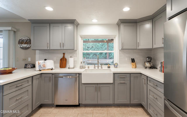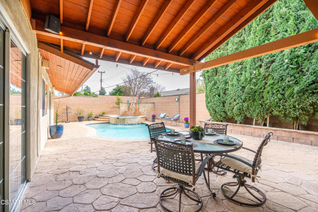Exceptional single-story home with a resort-style backyard in one of Simi Valley's most convenient and sought-after neighborhoods. This move-in-ready property offers modern upgrades, functional living space, and an entertainer's dream outdoor setting.The beautifully updated interior features a remodeled modern kitchen with newer appliances, fresh interior paint, updated toilets, faucets, shower door and fixtures, and upgraded lighting with dimmers. Additional recent improvements include a new water heater, pool heater, pool filter and jacuzzi filter. The home also offers central air and heat, dual-pane windows, a newer roof, skylight, surround sound in the living room, and both wood-burning and gas fireplace options.Designed for entertaining, the backyard showcases a sparkling pool and spa, fire pit, covered patio with fan and lighting, outdoor speakers, wrap-around counter seating for six, outdoor refrigerator, and a four-foot Thermador char grill with dual side burners. The functional floor plan includes a large primary suite, two additional bedrooms, two full bathrooms, formal dining room, and both formal and informal living areas. A two-car garage offers generous storage plus an additional outdoor storage container.Ideally located within short distance to parks, YMCA, Starbucks, Trader Joe's, Target, restaurants, and the Performing Arts High School--where you can enjoy quality theater, dance, and music performances just across the street. Easy freeway access completes this exceptional opportunity.