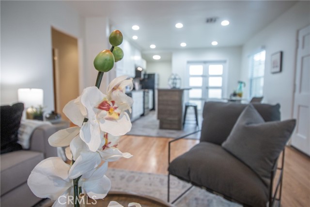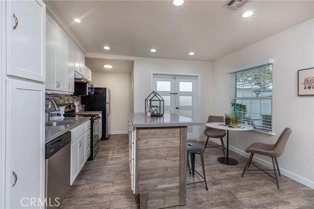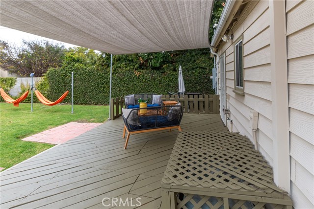 Tucked along a charming tree lined stretch of Keystone, this beautifully updated approximately 800 square foot residence offers two bedrooms and two baths, complemented by a detached approximately 400 square foot garage with a substantial bonus room above. Together, the existing structures present a compelling opportunity for a potential future approximately 800 square foot ADU conversion, creating exceptional flexibility for extended living, guest quarters, or income producing possibilities. From the moment you arrive, the home’s inviting curb appeal and classic front porch set the tone for what awaits inside, a thoughtfully refreshed residence designed for both everyday living and effortless entertaining. Step inside to a light filled living room anchored by a handsome fireplace, where natural light pours through multiple windows and highlights the home’s clean lines and timeless finishes. The space flows comfortably into the dining and kitchen areas, creating an easy, connected layout that feels both intimate and open. The kitchen is well appointed with crisp cabinetry, modern surfaces, and a functional center island that invites casual mornings and easy gatherings. Just off the kitchen, a quaint and private patio creates the perfect setting for morning coffee, al fresco dining, or a quiet glass of wine in the evening, a peaceful extension of the home that adds both charm and everyday livability. Both bedrooms offer a serene retreat and feature the rare luxury of direct private access to the backyard, creating a seamless indoor-outdoor connection and a sense of personal escape that is truly special. The primary bath showcases a beautifully remodeled walk in shower with contemporary finishes that feel elevated yet understated. Outdoors, the generous backyard offers space to relax, garden, or entertain beneath mature trees, with a spacious deck ideal for hosting or unwinding. The detached garage structure and upper level bonus room provide remarkable versatility for a work from home studio, creative retreat, guest accommodations, or future expansion, making this property as functional as it is charming. 211 South Keystone delivers character, flexibility, and thoughtful spaces that evolve with your lifestyle, all set within one of Burbank’s most desirable residential neighborhoods.