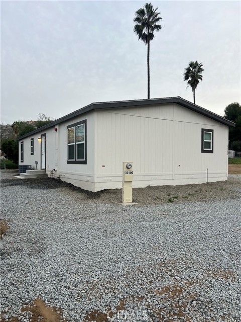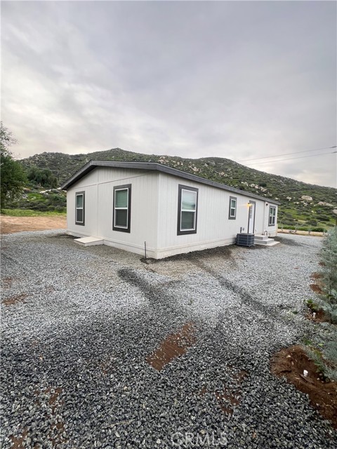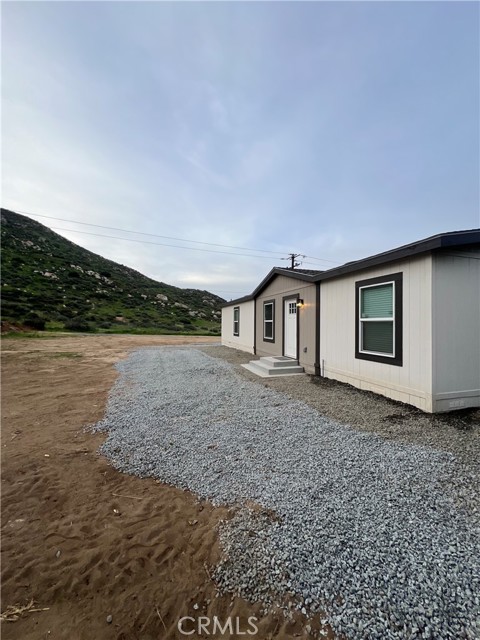 Find yourself ready for adventure with this 3 bedroom 2 bathroom brand new home nestled into the beautiful mountain scenery! Animals, equipment, dirt bikes, bring it all, this huge lot boast the opportunity to have your life at home! No need for RV storage, keep it at home! Household growing, thinking ADU in the future, or maybe you want a work shop, this home was setup with that in mind, flat lot, 200 Amp panel, home sitting at one end of the property leaving the other end ready for you. This new manufactured home sits on a stem wall foundation with a recorded 433A to keep it headache free we connected to SoCal Gas to avoid a pesky propane tank and EMWD water and sewer to avoid septic and well issues. Equipped with a fire sprinkler system and a California Wildfire Package or Wildland Urban Interface package. Move in ready, with appliances like a fridge, washer, dryer, dishwasher and an oven/stove included in the sale. Over 40 trees planted all on a self watering system. This home is the last one on the street giving you great views of the mountains and privacy all while being only minutes from the 215 fwy and Winchester Road.