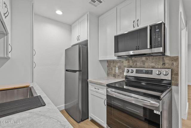 Welcome home at to this cozy and affordable ground-floor condo in the heart of Simi. The unit has been remodeled from top to bottom. The beautiful kitchen has brand new quartz counters with a stunning stone tile back splash, new cabinets with pull out drawers, a large stainless steel sink, all new stainless steel appliances. Enjoy the stunning remodeled bathroom with designer tile shower with beautiful glass doors. New vanity, new toilet & new flooring. Throughout the unit new recessed lighting has been added, all new vinyl planking flooring, ceilings have been scraped, new slider door & windows along with being painted from top to bottom. Nothing to do here put unpack & call this place home. The unit has a dedicated car-port with storage, a low HOA, includes plenty of visitor parking & a sparkling pool and spa. Close to schools, parks, shopping & transportation. WHY RENT WHEN YOU CAN OWN? Don't miss this opportunity.