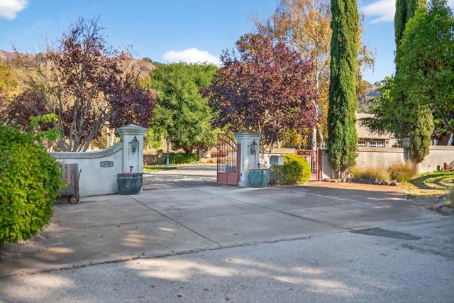 Centrally located between Silicon Valley and Carmel, three minutes from the freeway, Shangri-La-Dee-Da is a private estate surrounded by open land, rolling hills, and private ponds. Horse enthusiasts must see! Spanning 58+ acres, the property is a PREMIER EQUESTRIAN ESTATE, private family compound, and destination venue. The land includes two year-round ponds, two existing wells, solar-powered vineyard irrigation, organic non-pesticide grounds, approx 35 fruit trees, and internet service with two Starlink towers. The main residence approx 4,222 sq ft with 4 bed/3 bath, plus an additional 1,180 sq ft finished basement (not included in sq ft). A 2,300 sq ft 3 bed/3 bath guest house, providing accommodations for extended family, guests, caretakers, or event use. Equestrian amenities include two arenas (one covered), two barns, 10 stalls, a round pen, and an 85' Euro-walker. A large covered steel arena (86 x 200) supports year-round riding, clinics, and events. The vineyard spans 14 acres across three varietals with a separate service entrance, and a wine cellar complements the land. The property offers successful Airbnb use, weddings, private events, retreats, and wine production. Extensive infrastructure, drainage, and natural wind and fire protection allow for year-round use.