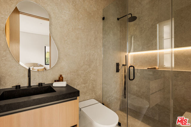 Newly built construction by MLR Development offering elevated modern living in prime Valley Village, just moments from Colfax Elementary. This 5-bedroom, 6-bath residence features soaring ceilings, an open-concept layout, and expansive glass that creates seamless indoor-outdoor flow throughout the main living spaces. Thechef's kitchen is equipped with Miele appliances, custom cabinetry, dual prep counters, and an oversized island ideal for everyday living and entertaining.The privatebackyard is a true retreat, complete with a pool, spa, outdoor kitchen, and fire pitperfect for hosting and relaxing alike. Designed with both comfort and functionality in mind,the home also includes a private home theater, an ensuite guest bedroom on the main level, and thoughtfully curated finishes throughout. Upstairs, four additional ensuitebedrooms are arranged for privacy and ease, anchored by a full laundry room.The spacious primary suite showcases vaulted ceilings, a private balcony, a spa-like bath,and an oversized custom walk-in closet. With smart-home features and a layout ideal for both entertaining and everyday living, this residence presents a rare opportunity totour a newly built home in one of Valley Village's most desirable neighborhoods.