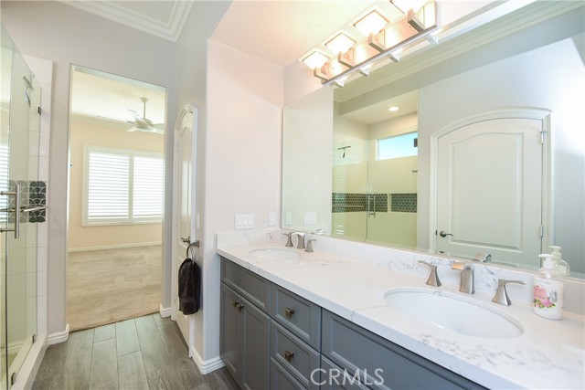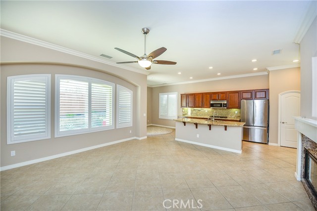 Welcome to resort-style living in the highly desirable Trilogy at Glen Ivy community. Ideally situated on 24112 Augusta Drive in Corona, this beautifully appointed home blends comfort, functionality, and upscale finishes throughout. The heart of the home is the gourmet kitchen, featuring granite countertops, a large center island, ample cabinetry, and a charming breakfast nook that flows seamlessly into the living room—perfect for everyday living and entertaining. The living area is warm and inviting with a refaced fireplace, while plantation shutters throughout add timeless style and privacy. The spacious primary suite is a true retreat, offering direct access to the backyard, a huge walk-in closet, and a beautifully remodeled primary bathroom with modern, spa-inspired finishes. A formal dining area provides the perfect setting for hosting, while a versatile flex room offers endless possibilities—ideal as a home office, hobby room, or easily convertible into a third bedroom. Additional highlights include an automatic water shut-off system that detects leaks, adds peace of mind, and can help lower insurance costs—a fantastic feature for owners who love to travel. Residents of Trilogy at Glen Ivy, a premier 55+ gated community, enjoy an exceptional array of amenities including a championship golf course, resort-style indoor and outdoor pools, state-of-the-art fitness center, pickleball and tennis courts, scenic walking and biking trails, and a vibrant lodge offering clubs, classes, and social events. Conveniently located near Glen Ivy Hot Springs, shopping, dining, and freeway access, this home offers the perfect balance of luxury, lifestyle, and convenience. This is more than a home—it’s a lifestyle. Come experience everything Trilogy has to offer.