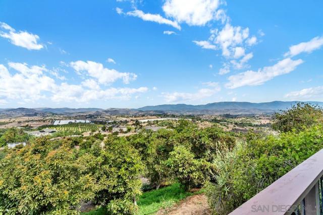 Enjoy sunset and sunrise every day. A rare opportunity to own 5 acres with stunning 360° views in west Valley Center—just minutes east of I-15. This expansive 3,172 sq. ft. custom home features 5 bedrooms, 3 baths, and an attached 3-car garage. Move in now and remodel over time, or redesign all this square footage to fit your vision—perhaps creating an ADU. Highlights include built-in cabinetry, walk-in closets & pantry, and charming wood-beam ceilings. Spacious patios capture breezes and panoramic views—even to the ocean on clear days. Additional features: ample parking for oversized vehicles, A70 zoning, city water, certified septic system, newer roof (approx. 6 years old), income-producing avocado grove, and an owned propane tank (mostly full). Potential for lot split. Make this one-of-a-kind property your dream home!