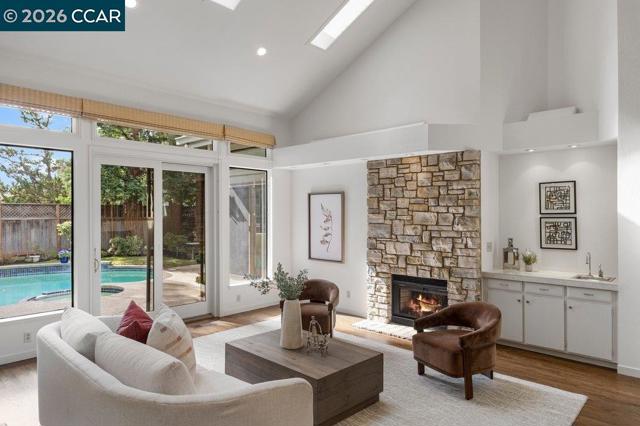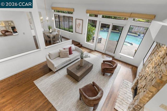Behind the guard gates of Blackhawk is a thoughtfully designed 4 bed, 3 bath home with a flexible bonus room and a floor plan that truly works. The kitchen features a large gas range, generous counter space, and opens to the casual dining area and family room. Formal living & dining rooms offer soaring ceilings and natural light, creating space for both everyday living and larger gatherings. The primary suite is located on the main level along with a guest bedroom and full bath - ideal for multi-gen living or extended guests. Upstairs are two additional bedrooms, a spacious bath, a dedicated laundry room, and a bonus room suited for an office, media room, or retreat. The backyard is designed for enjoyment, with a private pool and built-in grill. The manned gates provide privacy and peace of mind. Wide, shade-lined streets invite evening walks. Neighbors know one another. It’s a community that feels established and well cared for. For those who choose to join, the Blackhawk Country Club offers two golf courses, tennis courts, and a year-round heated pool.